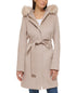 Cole Haan Casaco feminino com capuz e cinto, acabamento em pele sintética, bege, tamanho 4