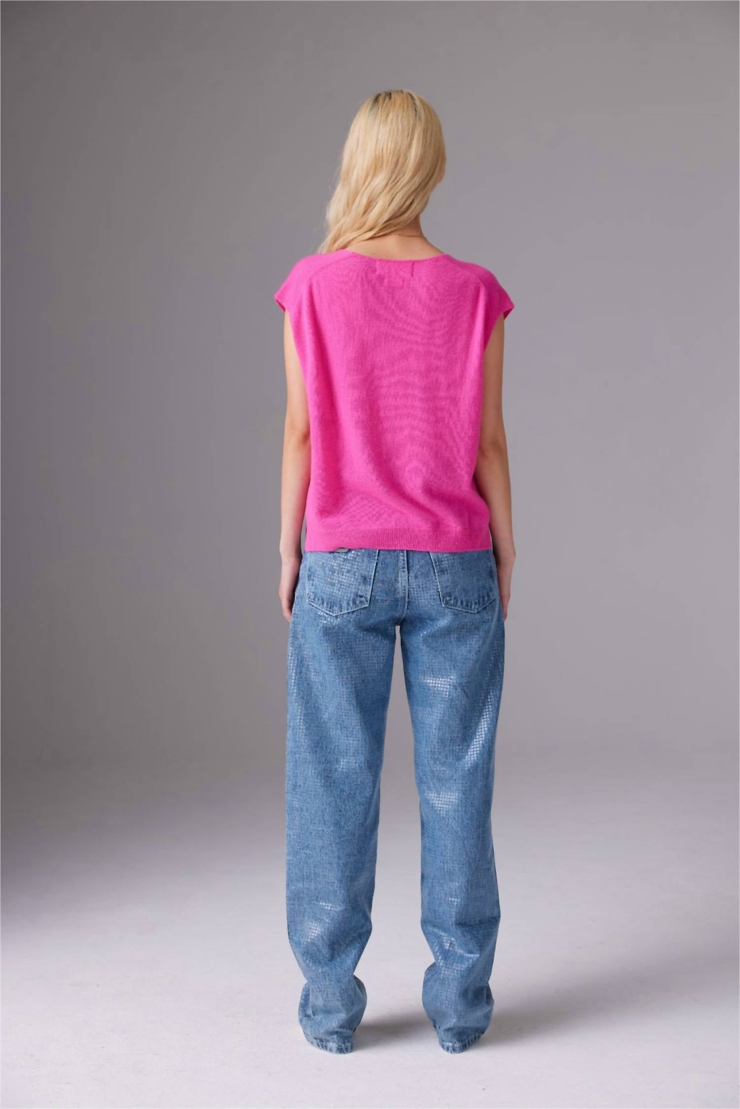 Introducing the Venus V Tank by Colorush, a minimalist, modern piece in a vibrant Punch hue. This sleeveless top boasts a clean v-neckline and a flattering cut, crafted from pure, textured cashmere. Closure: Pull on. Care: Machine wash. Perfect for any occasion, it effortlessly blends chic style with sustainable craftsmanship.