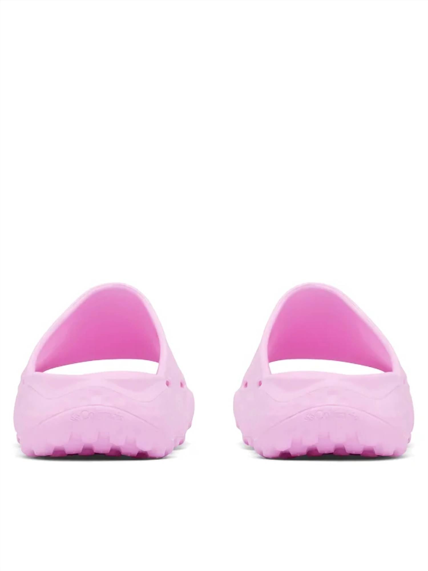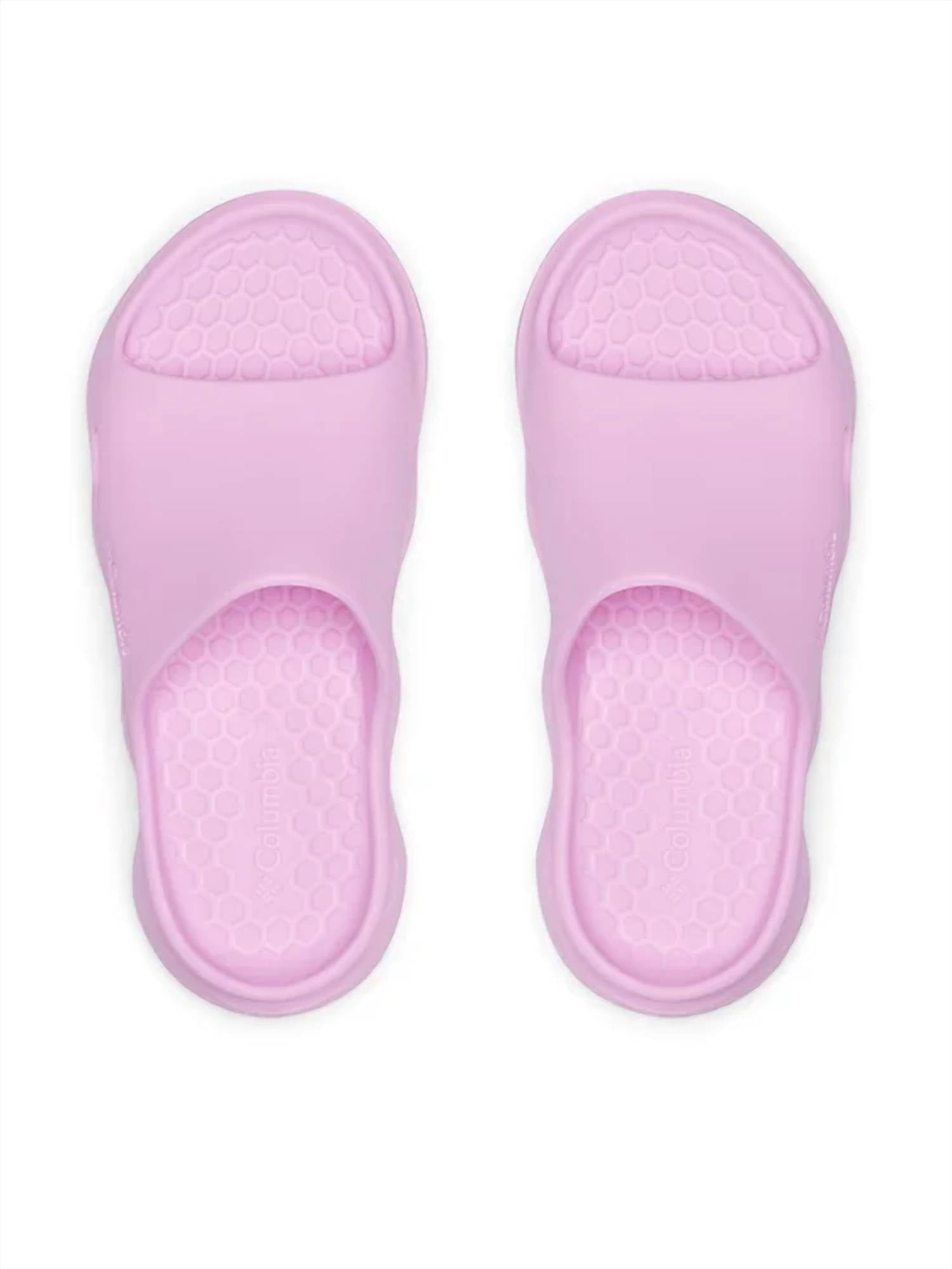 Experience the comfort and style of the Women's Thrive Revive Slide Sandals by Columbia, perfect for every step you take. Featuring a single strap with breathable windows, these slides provide a fresh and comfortable feel with an open toe design. The Omni-Grip™ LT outsole ensures durable traction with ultra-light ground-contact foam, and the Adapt Trax™ outsole offers outstanding grip in both wet and dry conditions. Slide into these slip-on sandals adorned with the signature Columbia logo and enjoy the textured hex footbed that enhances breathability and underfoot comfort.