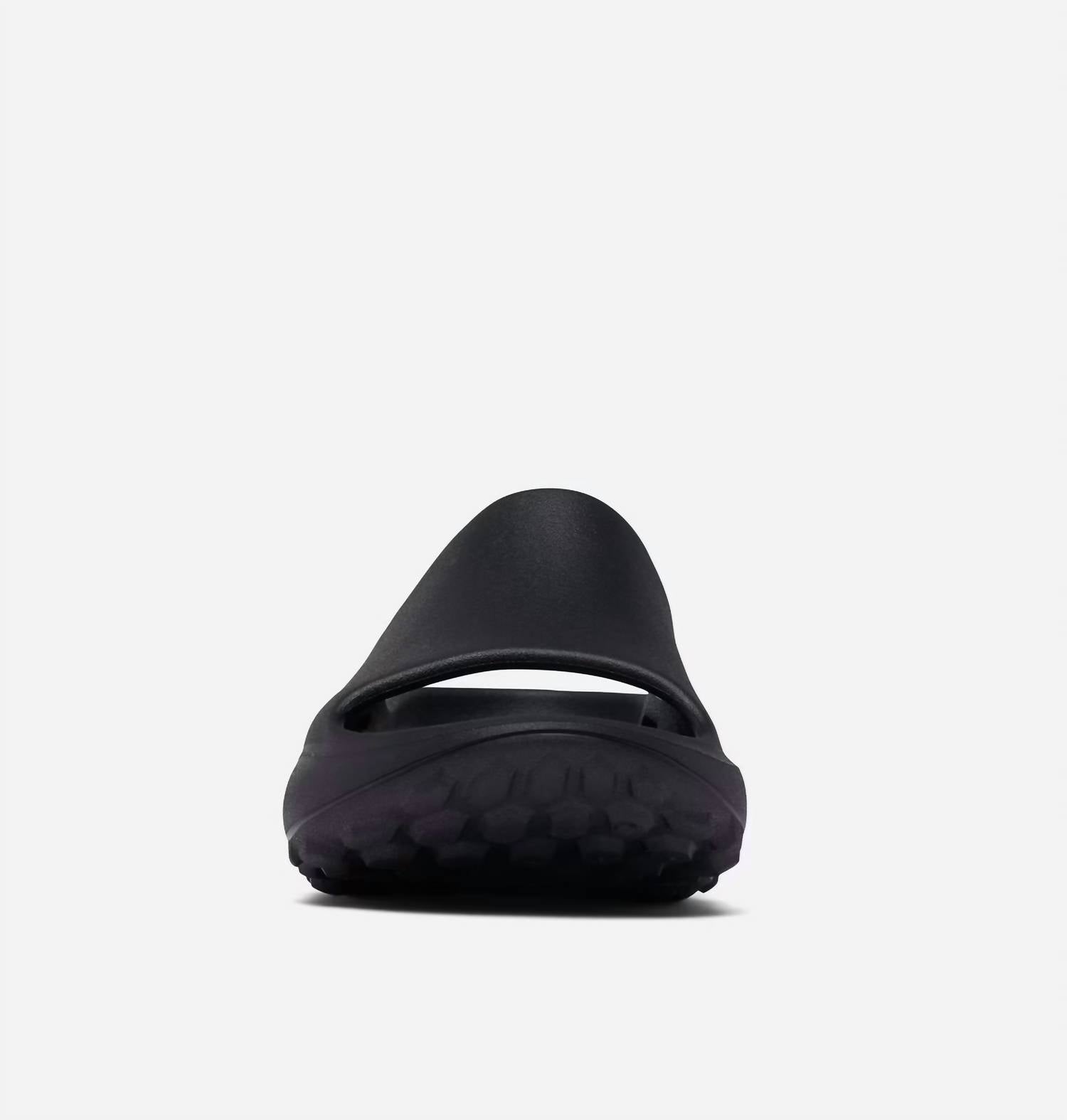 Experience the comfort and style of the Women's Thrive Revive Slide Sandals by Columbia, perfect for every step you take. Featuring a single strap with breathable windows, these slides provide a fresh and comfortable feel with an open toe design. The Omni-Grip™ LT outsole ensures durable traction with ultra-light ground-contact foam, and the Adapt Trax™ outsole offers outstanding grip in both wet and dry conditions. Slide into these slip-on sandals adorned with the signature Columbia logo and enjoy the textured hex footbed that enhances breathability and underfoot comfort.