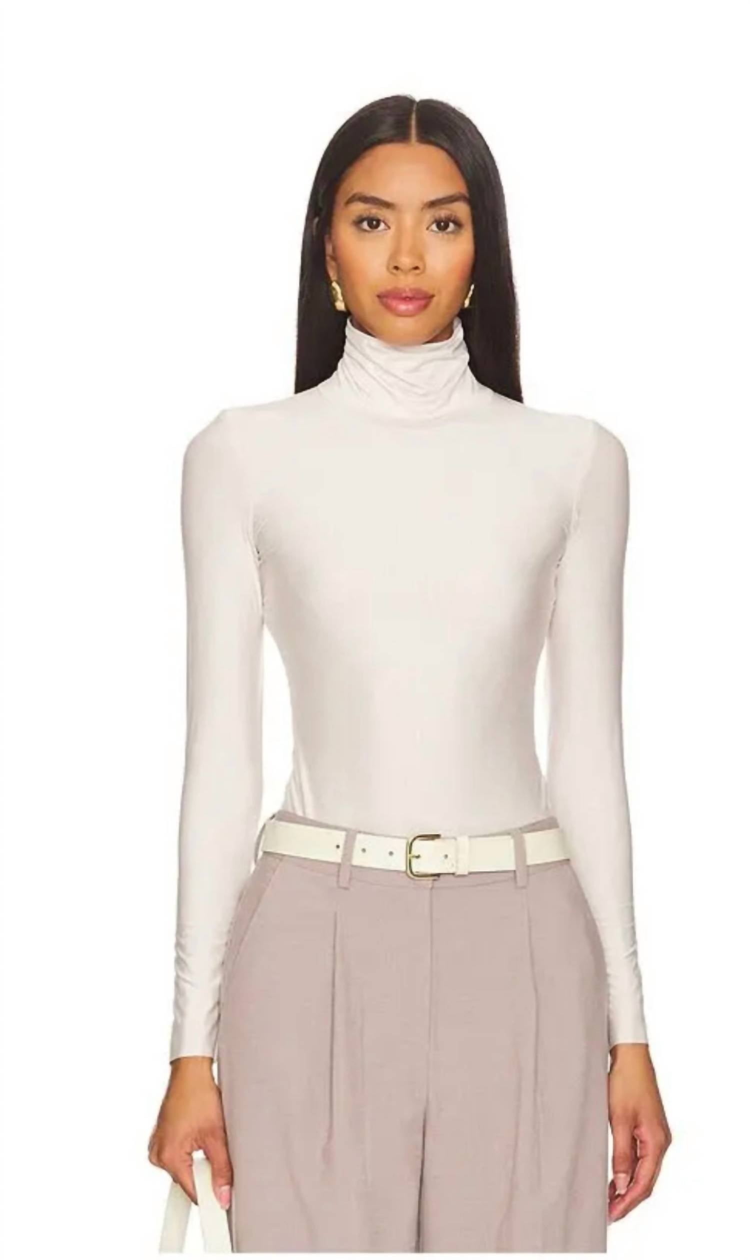 Pair this number with your favorite high-waisted jeans. Introducing the Women's Butter Turtleneck Bodysuit by Commando, a minimalist piece in a serene porcelain hue. This solid, long sleeve bodysuit features a chic turtleneck design and offers a pull-on closure for effortless wear. Ideal for spring vacations, this bodysuit is a versatile addition to your wardrobe. Crafted without pockets, it maintains a sleek silhouette perfect for a variety of occasions. 79% modal, 21% spandex