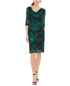 Vestido feminino estampado com manga 3/4, decote em V acima do joelho, para usar no trabalho, verde, tamanho 10, pequeno