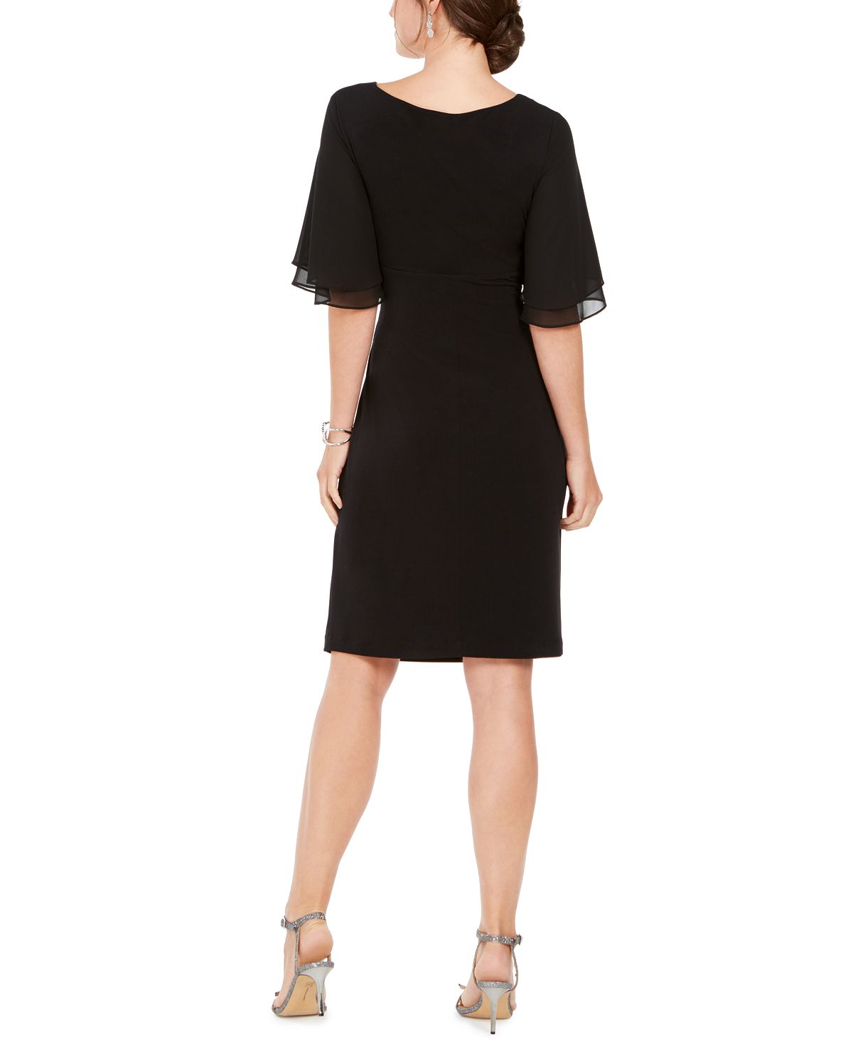 Vestido feminino Connected, manga curta, decote em V, na altura do joelho, preto, tamanho 6, pequeno
