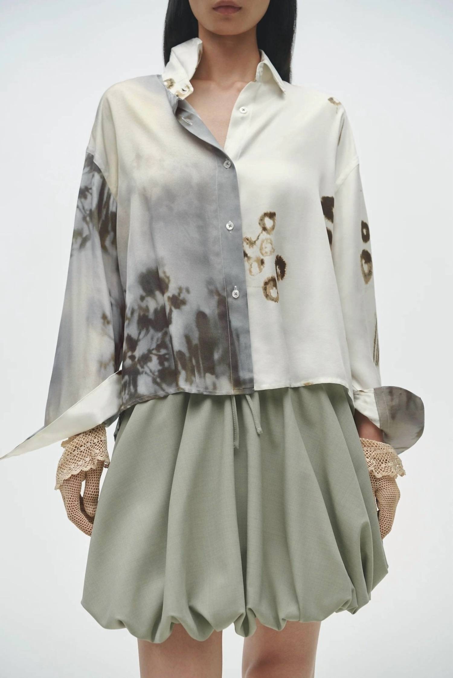The Balloon Mini Skirt in Salvia by Cordera is a chic addition to any wardrobe, perfect for a minimalist, dinner party look. This A-line skirt features a versatile balloon silhouette with a pull-on closure, an elastic waistband with a drawstring, and practical side pockets for added convenience. Crafted from 55% Polyester, 43% Virgin Wool, and 2% Elastane, it offers a comfortable, fluid drape in a lightweight fabric. This piece is made in Spain and requires hand washing or dry cleaning for care. The skirt is available in one size, accommodating US sizes 2 to 10, and is modeled by someone who is 5'10".