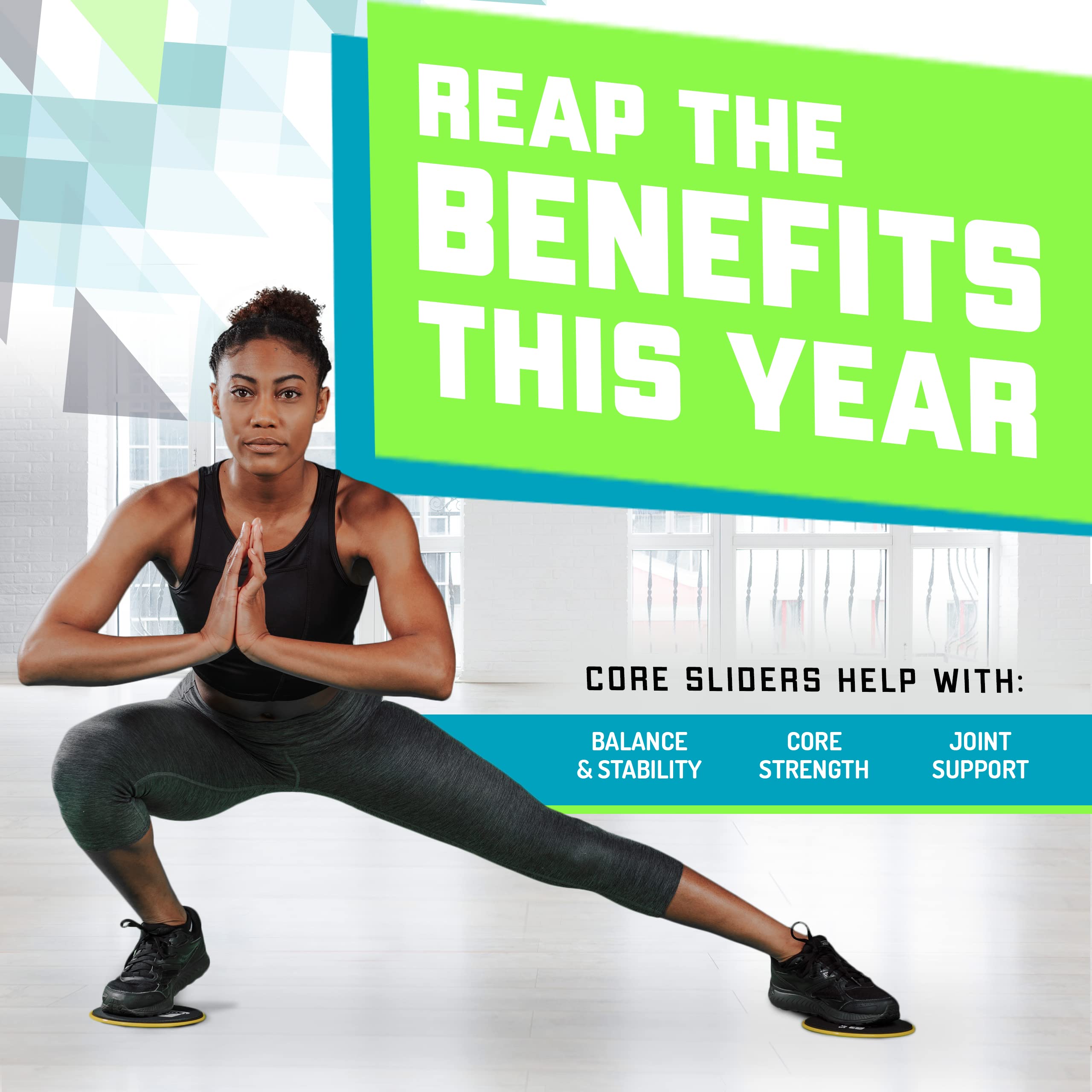 - USO EM MÚLTIPLAS SUPERFÍCIES - O design de disco de dupla face significa que você pode deslizar esses controles deslizantes de treino na maioria das superfícies, incluindo carpete, madeira, ladrilho e, claro, o chão da academia.