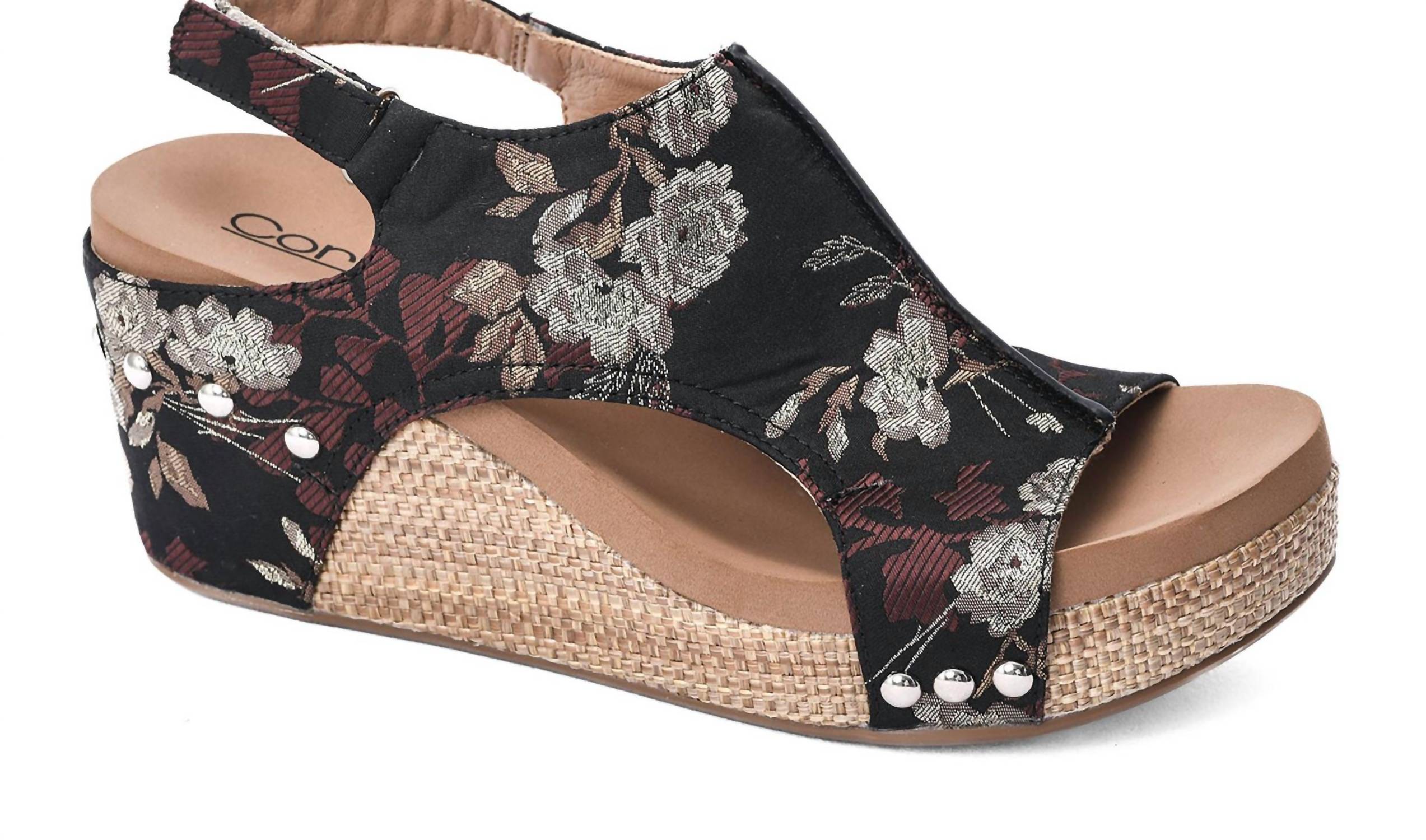 Eleve o nível dos seus calçados com essas adoráveis plataformas. Conheça a Sandália Carley Wedge Feminina da Corkys Footwear, uma escolha estilosa com salto anabela de 7,6 cm para dar um toque de estilo a qualquer look. Esta sandália apresenta uma estampa floral em preto e bege, adicionando um toque divertido ao seu guarda-roupa de verão. Possui tira ajustável de velcro no tornozelo, garantindo um ajuste seguro e confortável. Perfeita para longas caminhadas, esta sandália combina estilo e conforto com seu design de bico redondo.