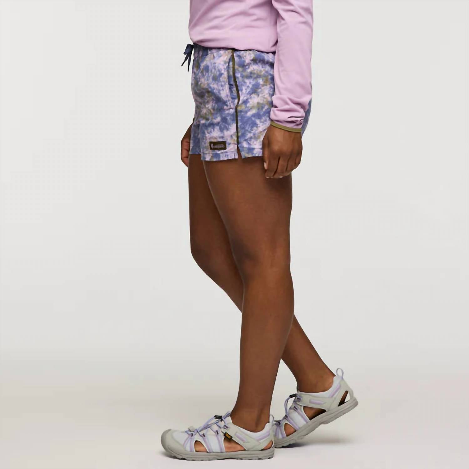 Elevate your active wardrobe with the Cotopaxi Brinco Print Short in Galactic Dusk, perfect for tackling the great outdoors. This patterned women's short features a relaxed fit with a 3" inseam and an encased elastic waistband with a non-stretch drawcord for comfort. Crafted from a recycled nylon blend (96% recycled nylon, 4% spandex, 151gsm), it offers UPF 50+ protection with a wicking finish. Closure: Pull on. Care: Machine wash, tumble dry. Featuring drop-in hand pockets, a snap back pocket with a drain hole, and retro tipping details, this pair is ideal for summer adventures like hiking.