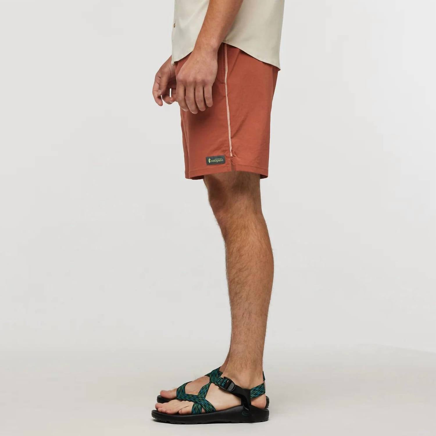 Meet the Cotopaxi Brinco Solid Short, perfect for all your outdoor adventures in a distinctive Faded Brick hue. Made from a blend of 96% recycled nylon and 4% spandex (151gsm), this breathable short offers UPF 50+ protection and a handy wicking finish. Featuring an encased elastic waistband with a non-stretch drawcord, and practical drop-in hand pockets, it combines function with a retro touch. Closure: Pull-on style. To maintain its quality, machine wash as needed.