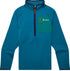 The Otero Half-Zip Pullover is a technical fleece designed for movement and comfort in cool weather. It has a fitted silhouette made from a recycled polyester blend with a raised grid back that enhances warmth and breathability. Key features include thumbholes for easy layering, concealed zippers, a zippered chest pocket, and offset underarm seams to boost mobility. Ideal for hiking, casual wear, and travel. Material: Polyester, Nylon, Spandex (including recycled fibers) Best Use: Hiking, Casual, Travel Special Features: Breathable grid back fleece, thumbholes, zippered pockets Fit: Regular size type with a casual jacket style