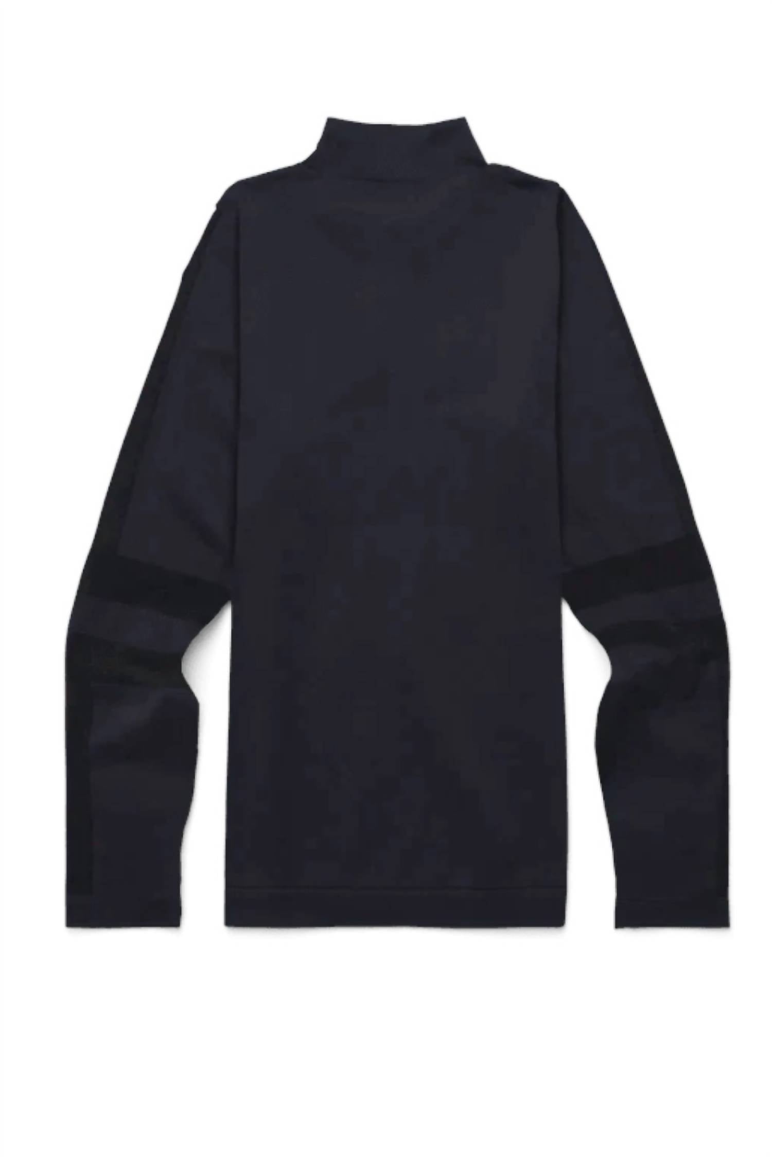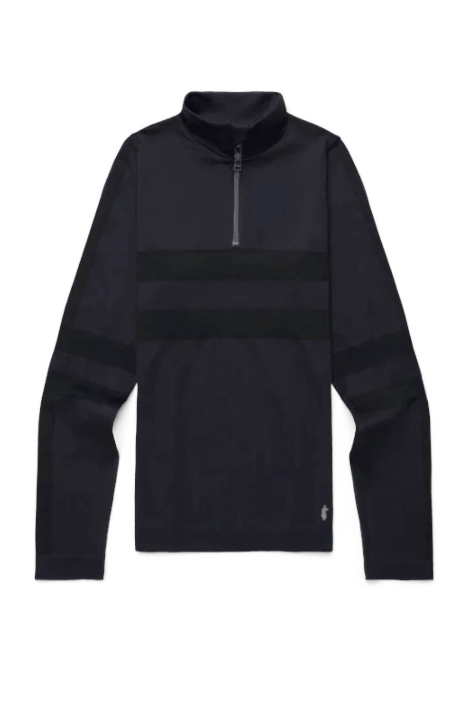 The Cotopaxi Women's Debajo Seamless Quarter Zip Baselayer in classic black is perfect for your athletic and leisure pursuits. Crafted with long sleeves and a nylon blend composition that includes 66% recycled nylon, 27% recycled polyester, and 7% spandex, this top ensures comfort and flexibility. Made with a pull-on style, this garment is designed with a collar neckline for added style. Care for it easily with machine wash and tumble dry instructions.