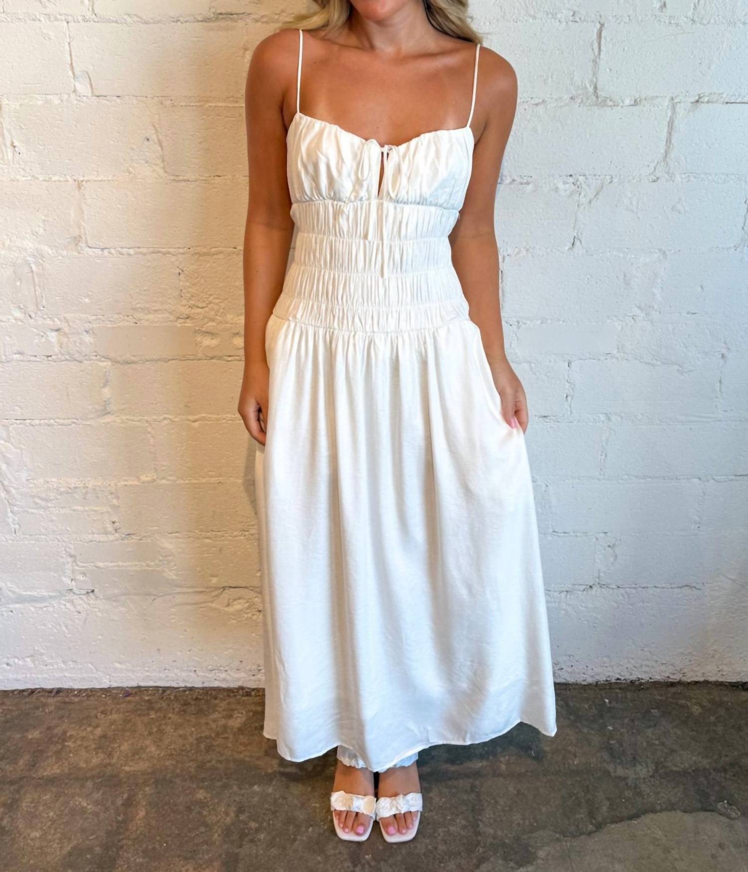 Introducing the Let’s Have Sorbet Maxi Dress by Cotton Candy, a pristine white ensemble that evokes the vibrant hues of summer. Designed with spaghetti straps and a fit and flare silhouette, this dress offers a flattering sweetheart neckline and features a classic tie closure. Composition: 65% Rayon, 35% Polyester. Care: Hand wash separately in cold water, line dry, and cool iron if necessary. Perfect for holiday parties and summer events, it embodies minimalist elegance while ensuring comfort.