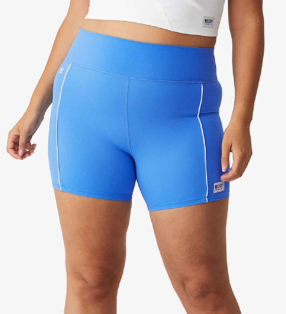 Aposte na tendência dos shorts de ciclismo com o nosso short de ciclismo estilo booty. O ajuste confortável e o comprimento médio os tornam perfeitos para combinar com sua camiseta ou suéter oversize favorito. Ciclismo de verdade opcional. | Comprimento até o meio da coxa com bolsos com zíper | Costuras planas garantem um ajuste suave e confortável | Tratamento do tecido que absorve a umidade | Observe que este modelo será enviado em tamanho australiano | Siga as conversões de tamanho | Conversões de tamanho - 0 EUA = XXXS AUS
