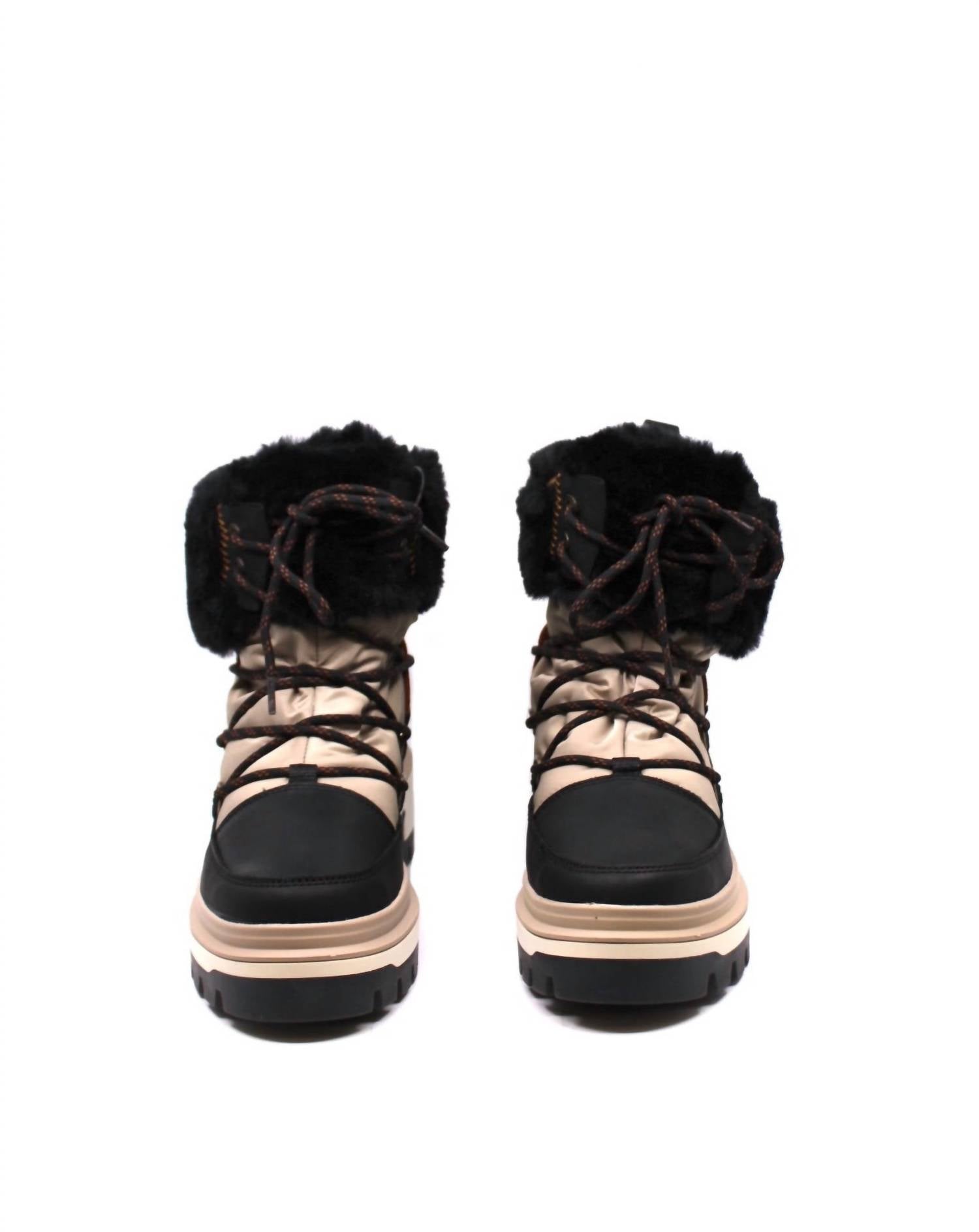 Saia com confiança e exiba seu gosto impecável com estas botas versáteis e modernas. Seu estilo clássico fará você recorrer a elas estação após estação. Apresentam construção em couro e nylon com detalhes ousados como a gola e a lingueta de pele sintética, além de argola em D metálica. São confeccionadas com solado de borracha termoplástica, entressola com amortecimento em poliuretano e salto de 5 cm. Sempre à prova d'água. Temperatura nominal de -24°C/-11°F. Isolamento PrimaLoft® Gold 200g. Forro em lã polar. Palmilha removível em espuma moldada. Solado de borracha termoplástica antiderrapante.