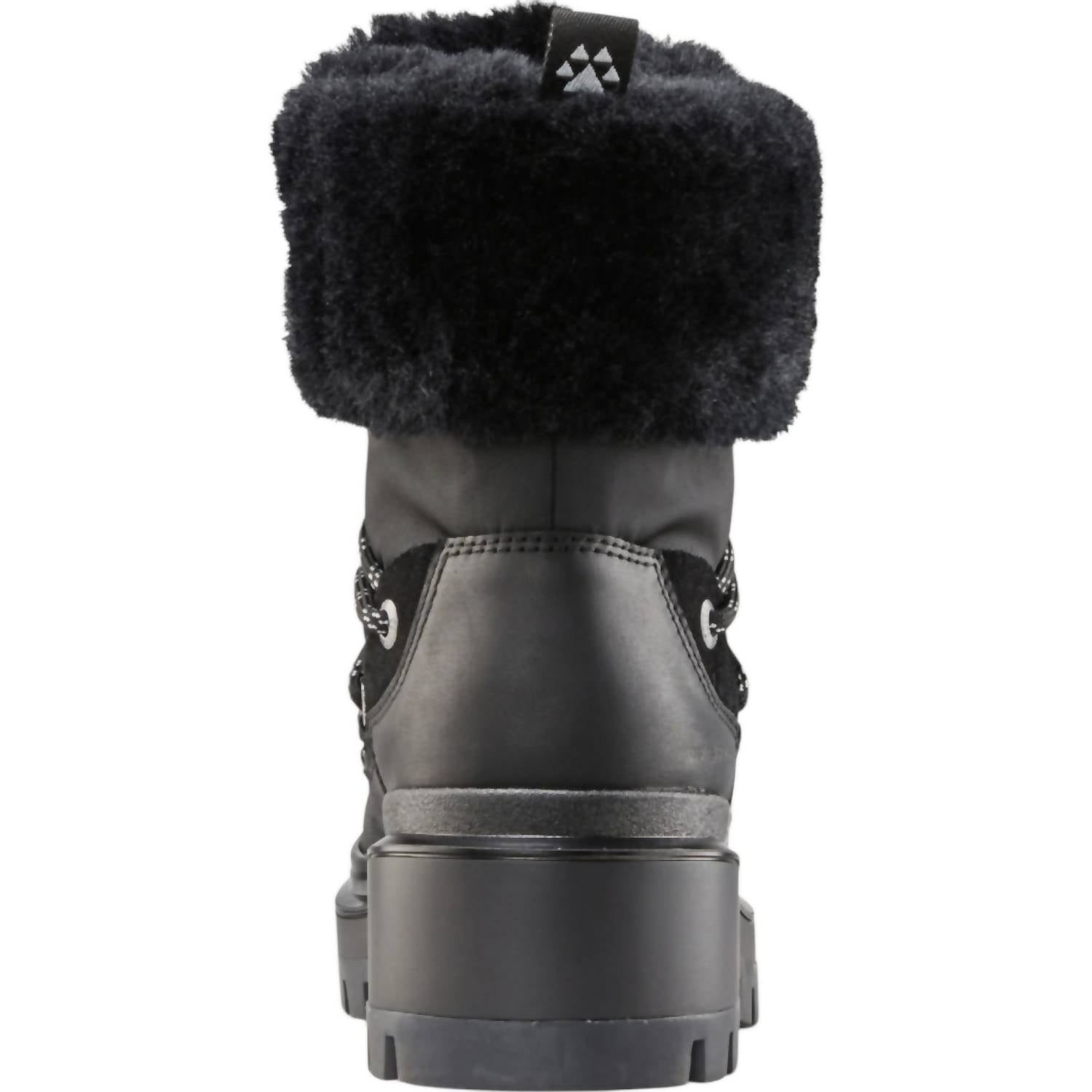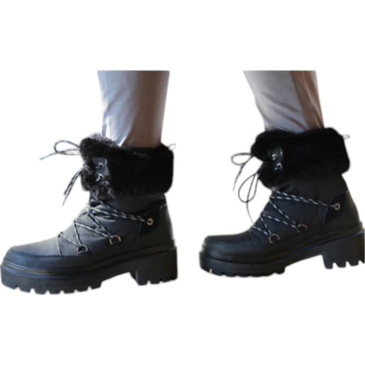 Entre com confiança na estação fria. Projetadas para combinar estilo e funcionalidade. Botas impermeáveis para o inverno e a chuva. Apresentam cabedal em couro preto, tecido e pele sintética, com forro aconchegante em fleece polar. Garantem que seus pés permaneçam aquecidos e secos. O salto bloco e o bico arredondado proporcionam conforto e estabilidade. A palmilha acolchoada removível oferece suporte personalizável. Temperaturas classificadas para suportar condições de até -11°F/-24°C. A companhia perfeita para aventuras em climas frios.