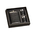 An 8 oz stainless steel flask, encased in black leatherette. Includes two matching shot glasses and a striking gift box with cover. Easy to clean and maintain, ensuring long-lasting enjoyment.