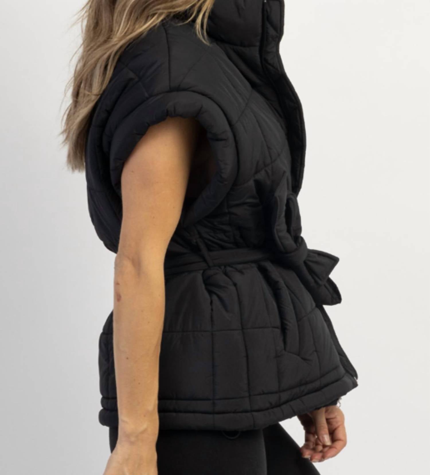 Temperaturas mais amenas significam jaquetas puffer fofas, e esta é uma das favoritas dos fãs. Jaqueta puffer acolchoada por toda a peça, sem mangas, cinto de amarração frontal, amarração por si só, detalhe franzido na parte inferior, forro, acabamento escovado. 100% poliéster. A modelo veste tamanho P e tem 1,73 m de altura.