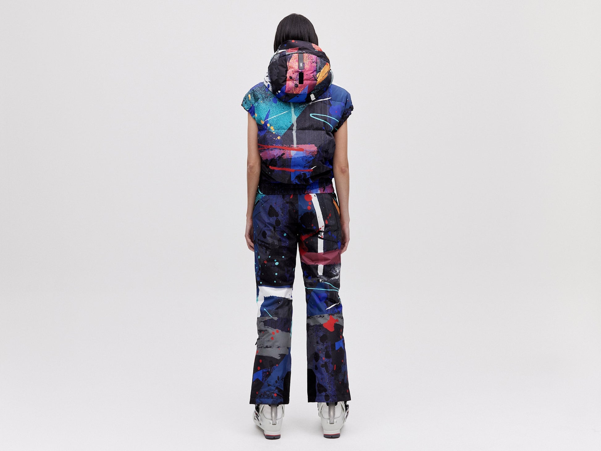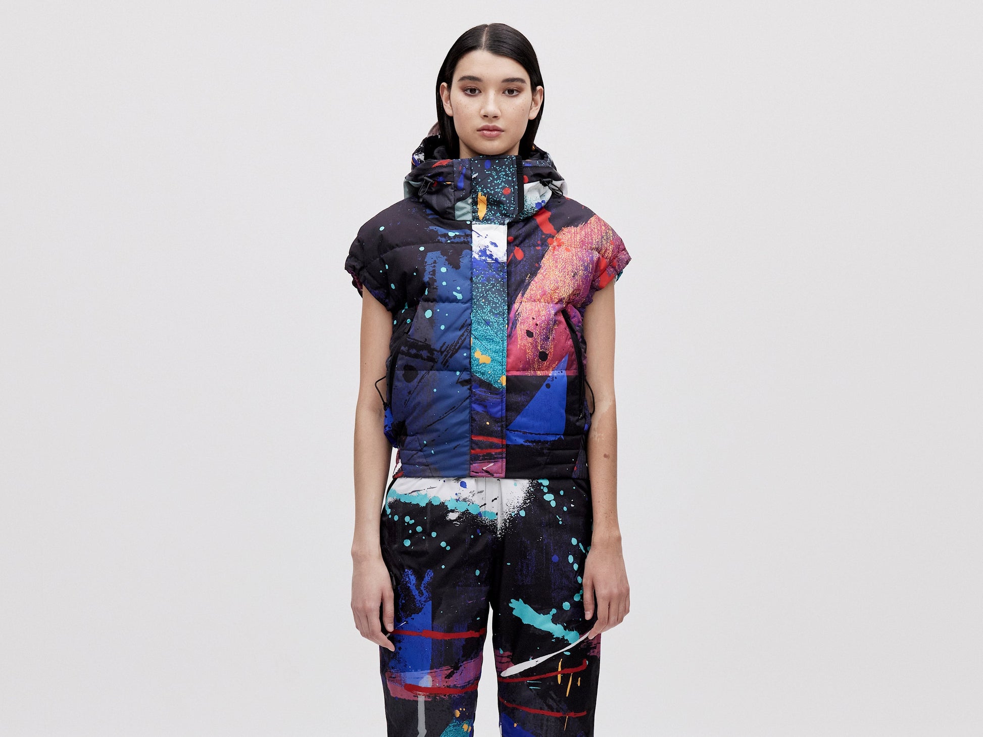 Cropped Down Vest - Dark Splatter