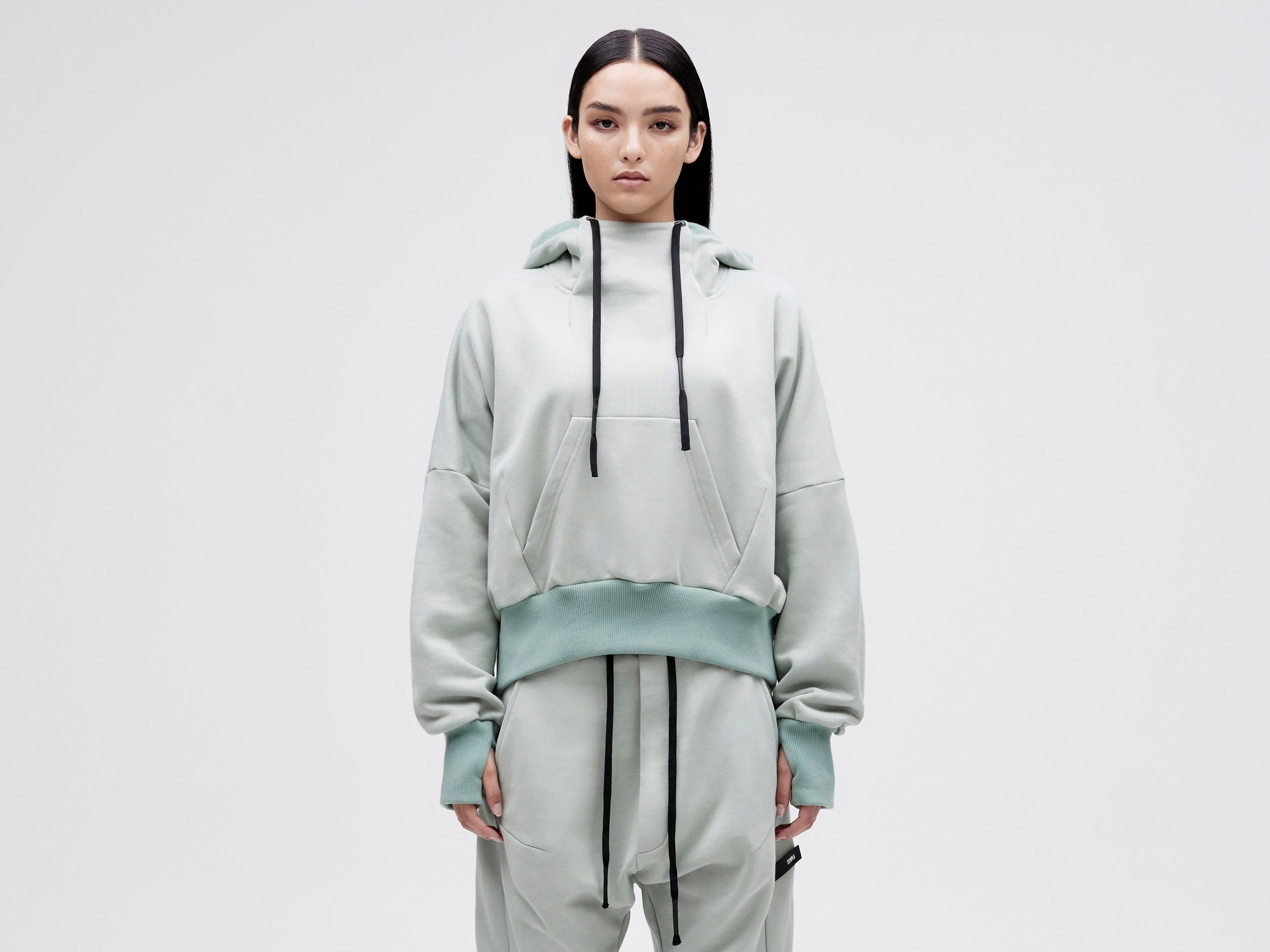 Crafted from luxuriously soft Italian organic cotton fleece, our Cropped Hoodie has been designed with a sporty feminine silhouette. Featuring a billowing back, drop shoulders and edged with ribbing, this hoodie will provide you with the perfect definition and volume where you need it.