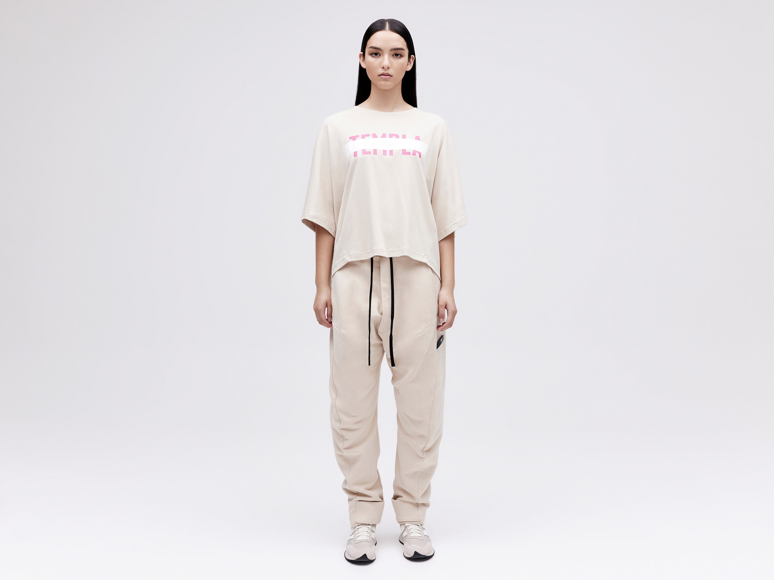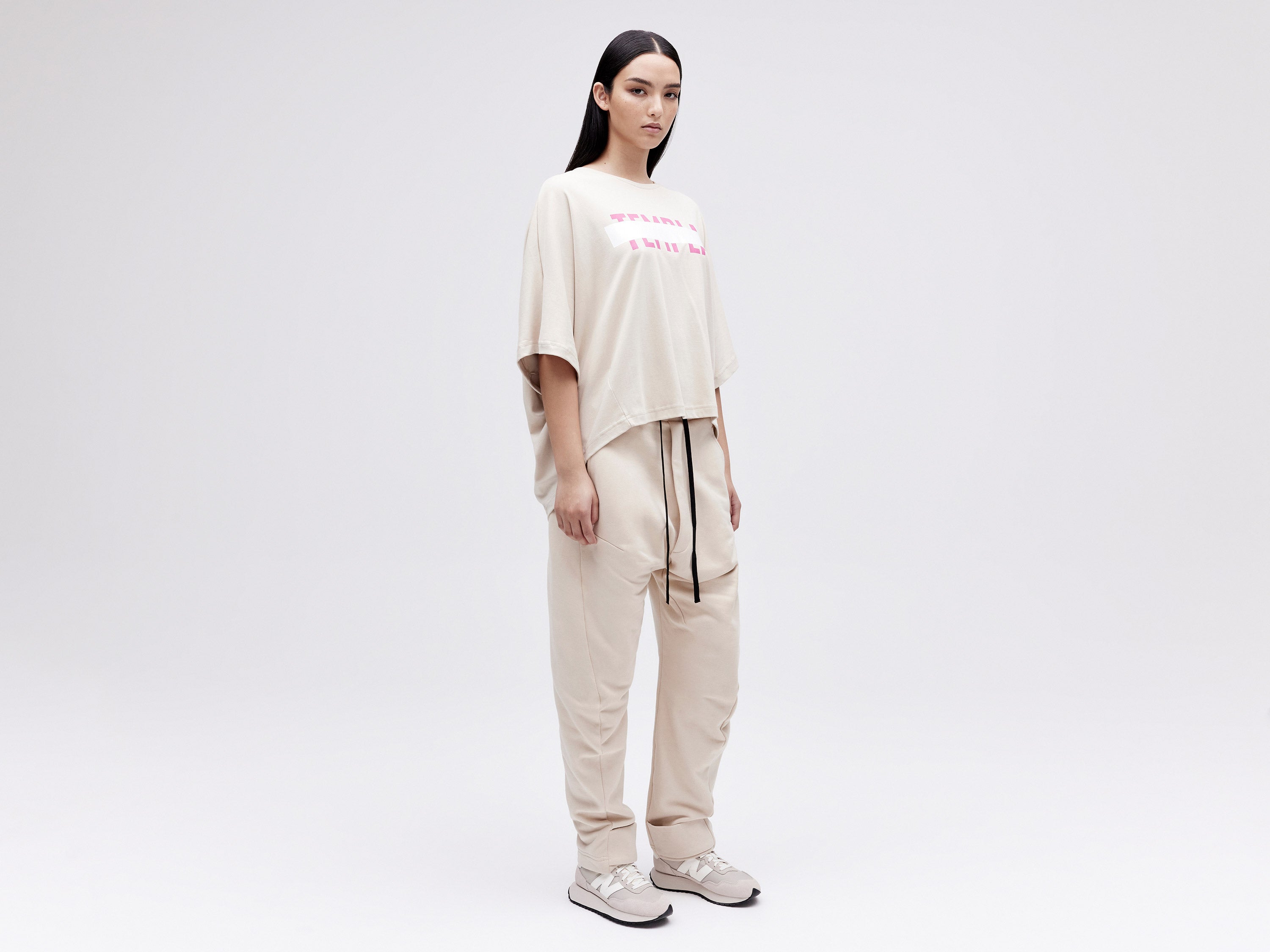 With a simple yet feminine design, our Cropped Tee combines fluid dropped sleeves, with a high/low hemline accentuating the neat front with the draped volume in the back. This effortless crew neck t-shirt is an easy-fit essential crafted from luxurious organic cotton. Our "STRIKE OUT" taped print gives this flattering t-shirt plenty of styling options all year round.