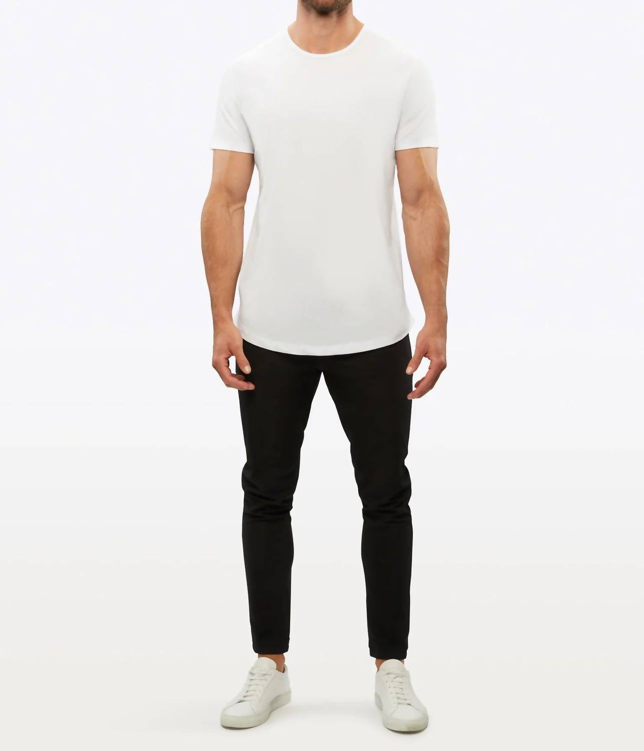 Introducing the AO Curve-Hem Tee by CUTS, crafted for the modern professional who’s "Always On." This short-sleeve solid white tee features a crewneck and a tailored signature fit that effortlessly enhances your silhouette. Made from proprietary PYCA Pro® fabric, it comprises 62% polyester, 33% cotton, and 5% spandex, ensuring a wrinkle-resistant and buttery soft feel. With a pull-on closure, it offers convenient dressing, and its care instructions are straightforward: machine wash cold with like colors and tumble dry on low.