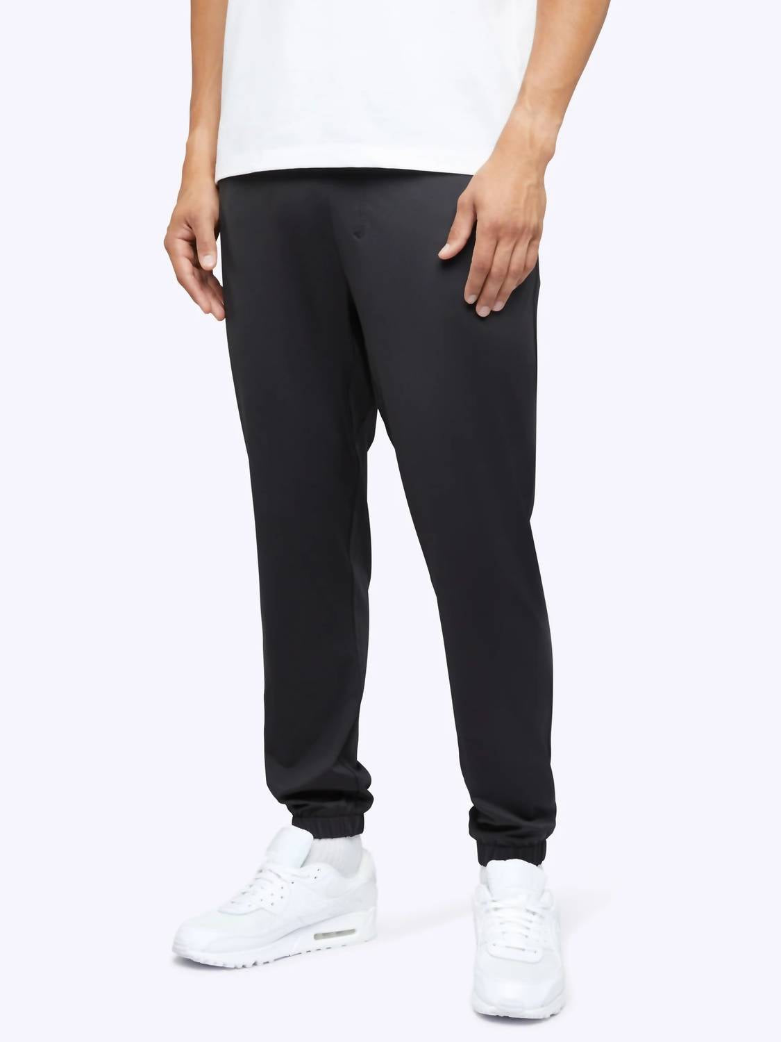 Elevate your loungewear with the Foundation Jogger by CUTS, crafted in solid black for a sleek look. Made from 88% polyester and 12% spandex, these men's joggers offer a buttery soft feel with 4-way stretch, ensuring flexibility and comfort. Designed with a 28.5" inseam and a tapered leg, they feature an elastic waistband with a drawstring for a secure fit. Care is simple with machine wash instructions and lay flat to dry, while practical details like side seam pockets and a back pocket with a zipper add convenience.