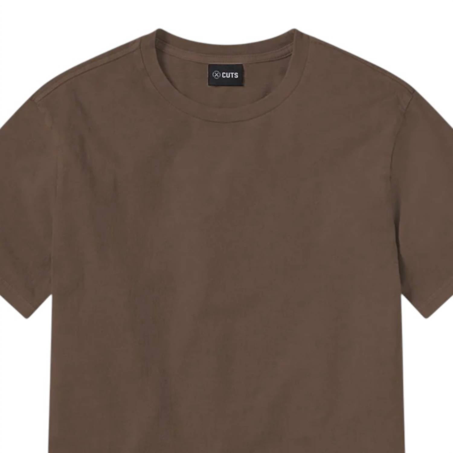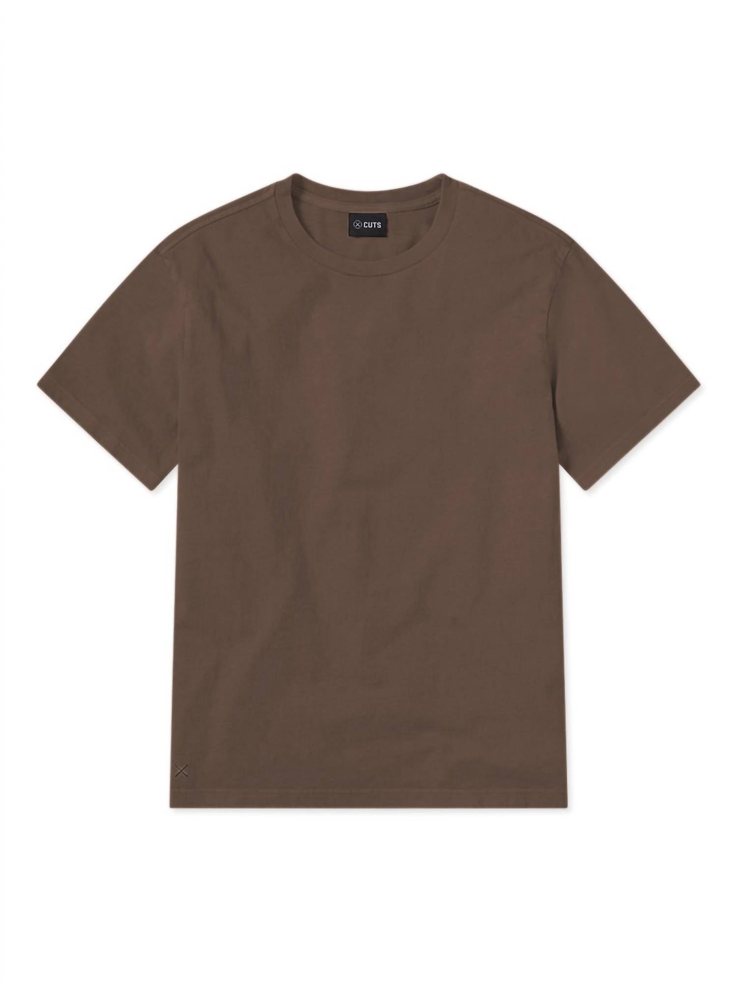 Elevate your casual wardrobe with the Men's Overtime Short Sleeve Tee by CUTS, tailored for women in a chic mocha hue. This minimalist top features a crewneck design and is crafted from a comfortable cotton blend with 88% cotton and 12% polyester, offering a soft, midweight jersey fabric. The pull-on closure ensures easy wear, made in China for quality assurance. For care, simply machine wash and lay flat to dry.
