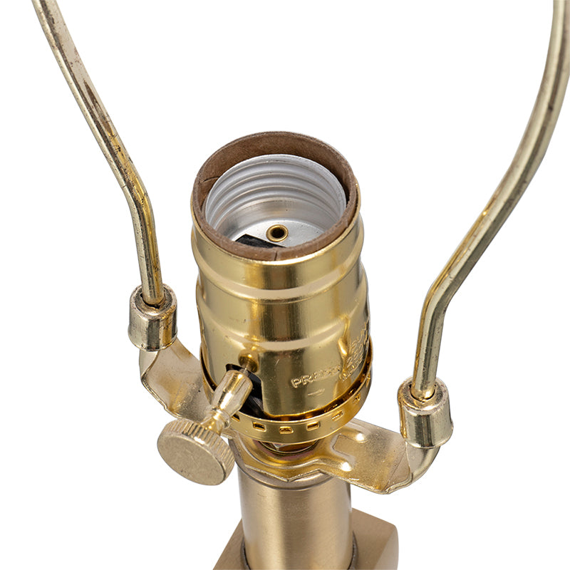 - Square pedestal base with a slim gold-finished body accented by white alabaster slabs