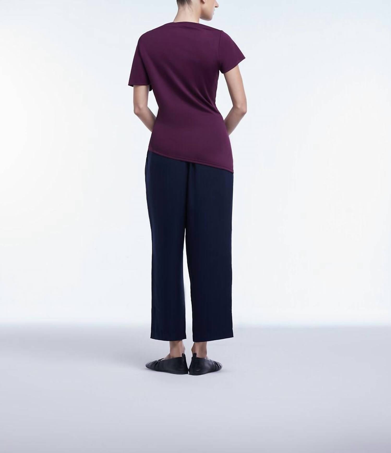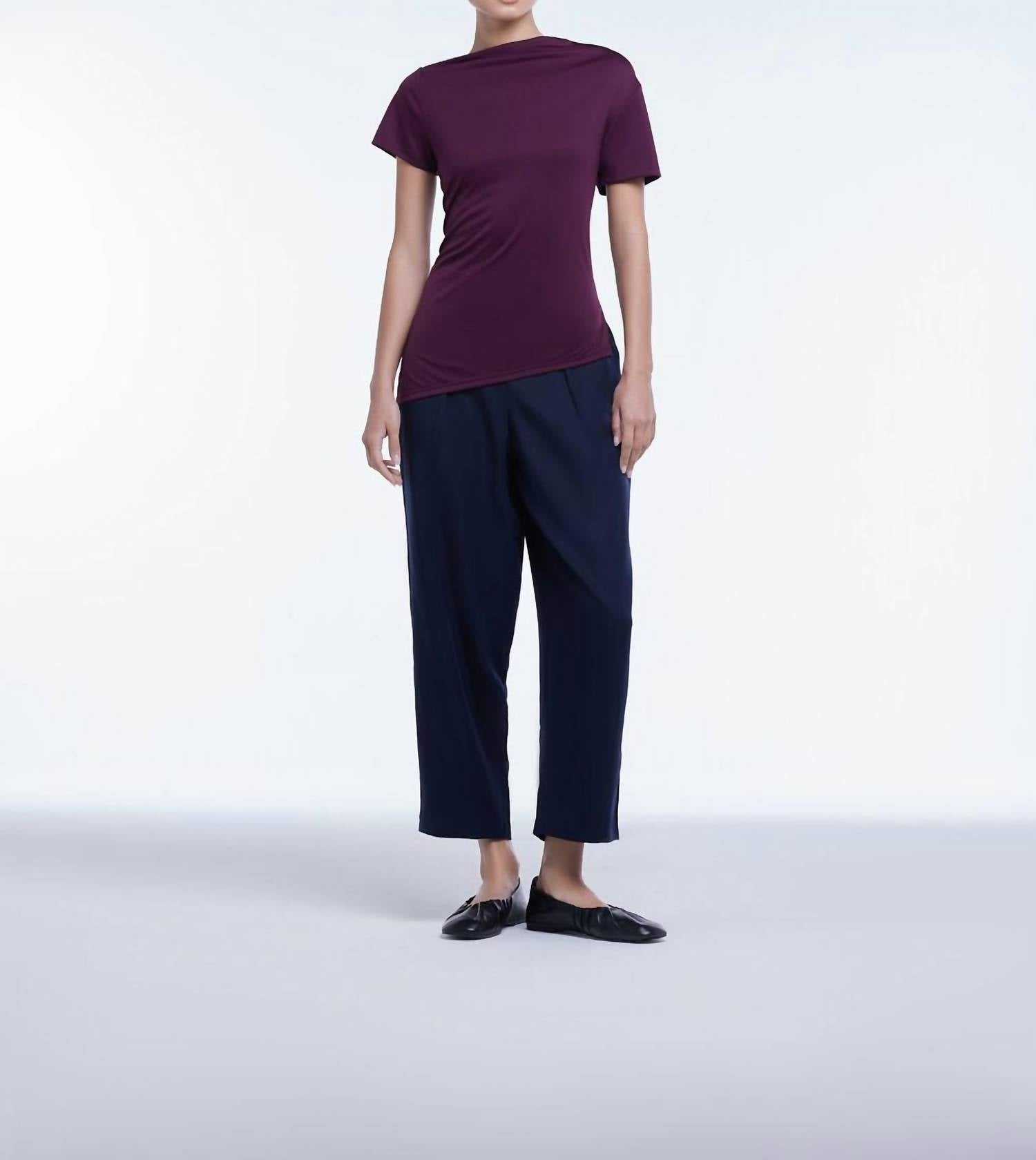 A camiseta de manga curta que você vai querer em todas as cores. A blusa de manga curta assimétrica da Dāl the Label é uma adição estilosa ao seu guarda-roupa de primavera, com um tom uva-passa e um design minimalista. Esta blusa feminina é confeccionada em poliéster sólido, proporcionando um toque leve e respirável. Apresenta uma elegante gola alta com drapeado e franzidos justos para uma silhueta elegante, complementada por uma bainha dividida. O prático fecho pull-on garante fácil colocação, enquanto os cuidados são fáceis com instruções de lavagem à máquina e secagem no varal.