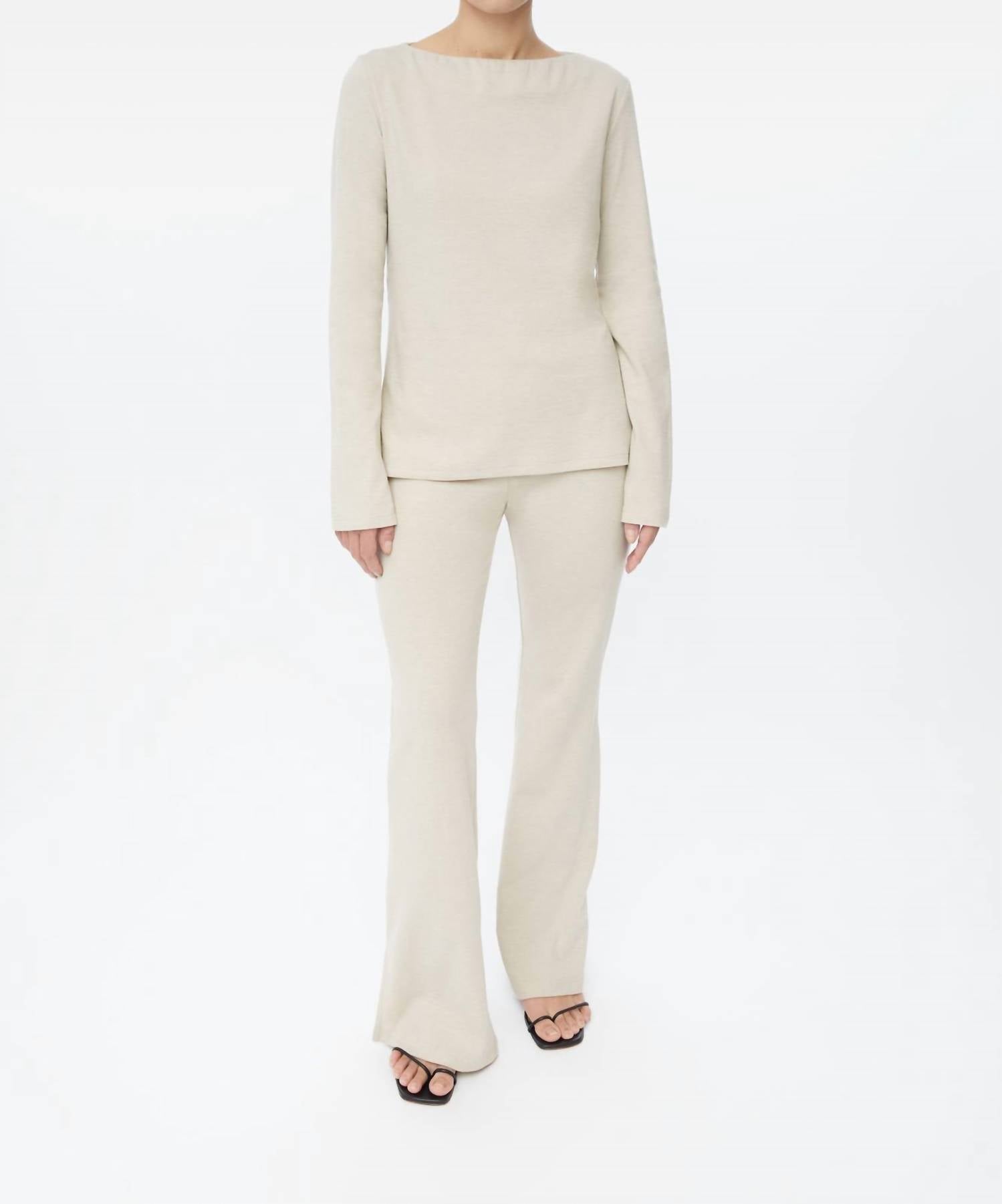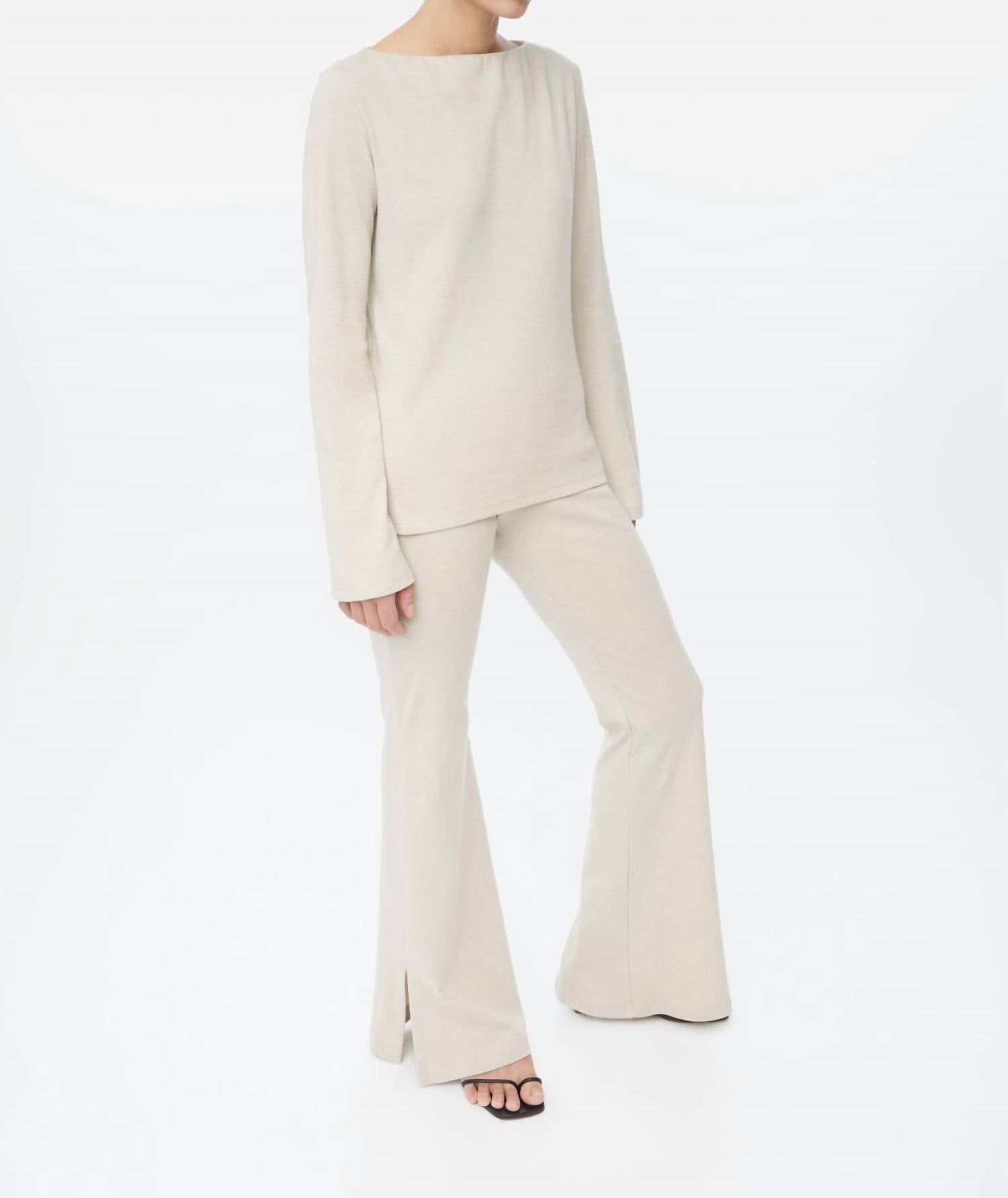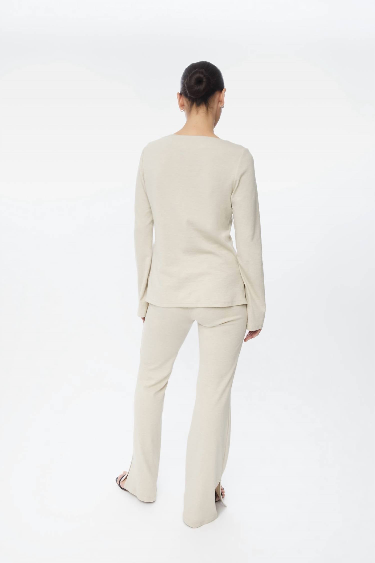 Mantenha-se aquecido e estiloso com esta peça essencial de tricô versátil e despojada. Use-o sozinho ou em camadas, é o suéter perfeito para a estação e você vai desejar tê-lo em todas as cores. Experimente a elegância atemporal do suéter de gola canoa em mistura de lã da Dāl the Label em um sofisticado tom de aveia. Esta peça chique apresenta mangas longas com fendas, um design contemporâneo e uma silhueta em corte A que valoriza o corpo. Confeccionado em uma luxuosa mistura de lã e algodão, o suéter oferece um toque aconchegante e macio que complementa seu design minimalista e sólido. O suéter é perfeito para escapadas de primavera e reuniões festivas, com instruções de cuidado recomendando apenas lavagem a seco.