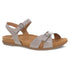 Meet the Dansko Women's Judith Sandal in the stylish Calf Stone color, where comfort meets chic boho style. Crafted with high-quality leathers, these sandals feature chrome-free leather lining and a soft nubuck socklining for a gentle underfoot feel. The contoured dual-density EVA footbed ensures full-foot support, paired with a lightweight rubber outsole for durability and a hook-and-loop closure for adjustability. Ideal for summer dinner parties, these open-toe flat heel sandals blend fashion and function seamlessly.