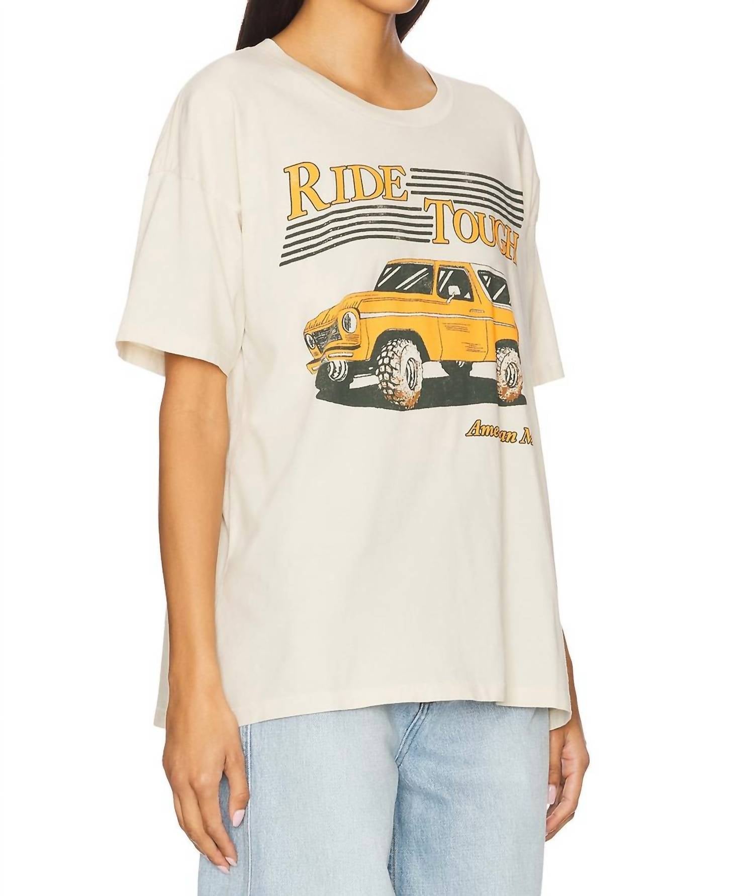 The short sleeve tee you'll want in every color. Meet the Ride Tough Bronco Tee by DAYDREAMER, perfect for effortless streetwear style with its short sleeves and oversized fit. This graphic tee is crafted from midweight 100% cotton for the ideal drape and features a crewneck and pull-on closure. Made in the US, the tee showcases an open neckline and distinctive single needle ladder stitch at all hems, adding a touch of authentic detailing. Care for it by hand washing cold and laying flat to dry, ensuring its longevity and comfort.