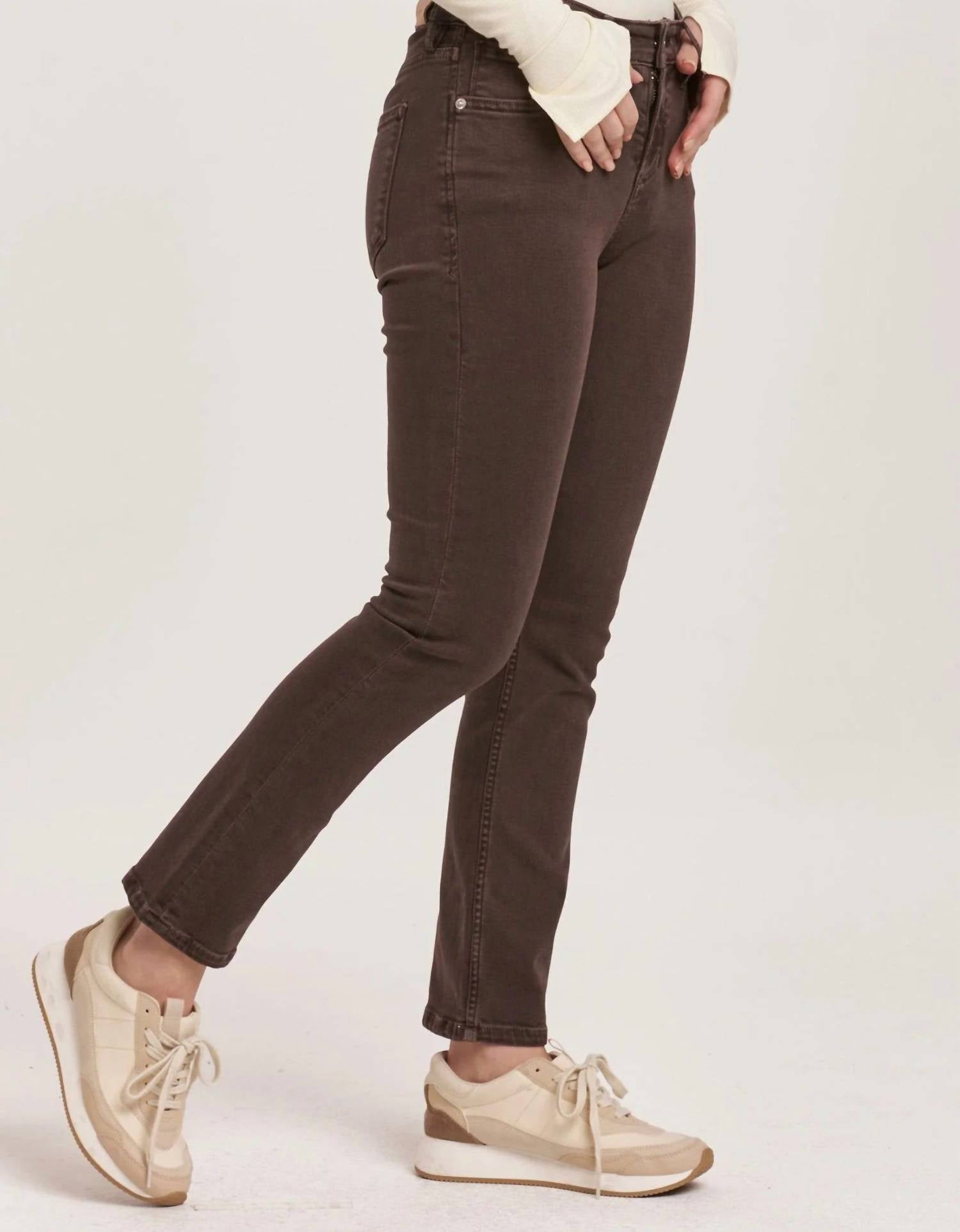 Apresentando a Calça Jeans Blaire de Cintura Média e Perna Reta da DEAR JOHN DENIM em um sofisticado tom marrom mocha. Esta calça jeans apresenta cintura média com um corte reto e slim, projetada para o máximo conforto e um caimento perfeito do quadril até o meio da coxa. Confeccionada em uma mistura de algodão superelástico (90% algodão, 8% poliéster, 2% elastano), esta calça oferece 23,8 cm de cós frontal, 34,8 cm de abertura nas pernas e 76 cm de costura interna no tamanho 27. Importada e cuidadosamente projetada com braguilha com zíper e fecho de botão, esta calça jeans inclui um estilo de cinco bolsos para maior praticidade. Cuide dela com uma simples lavagem à máquina com água fria e secagem em temperatura baixa.