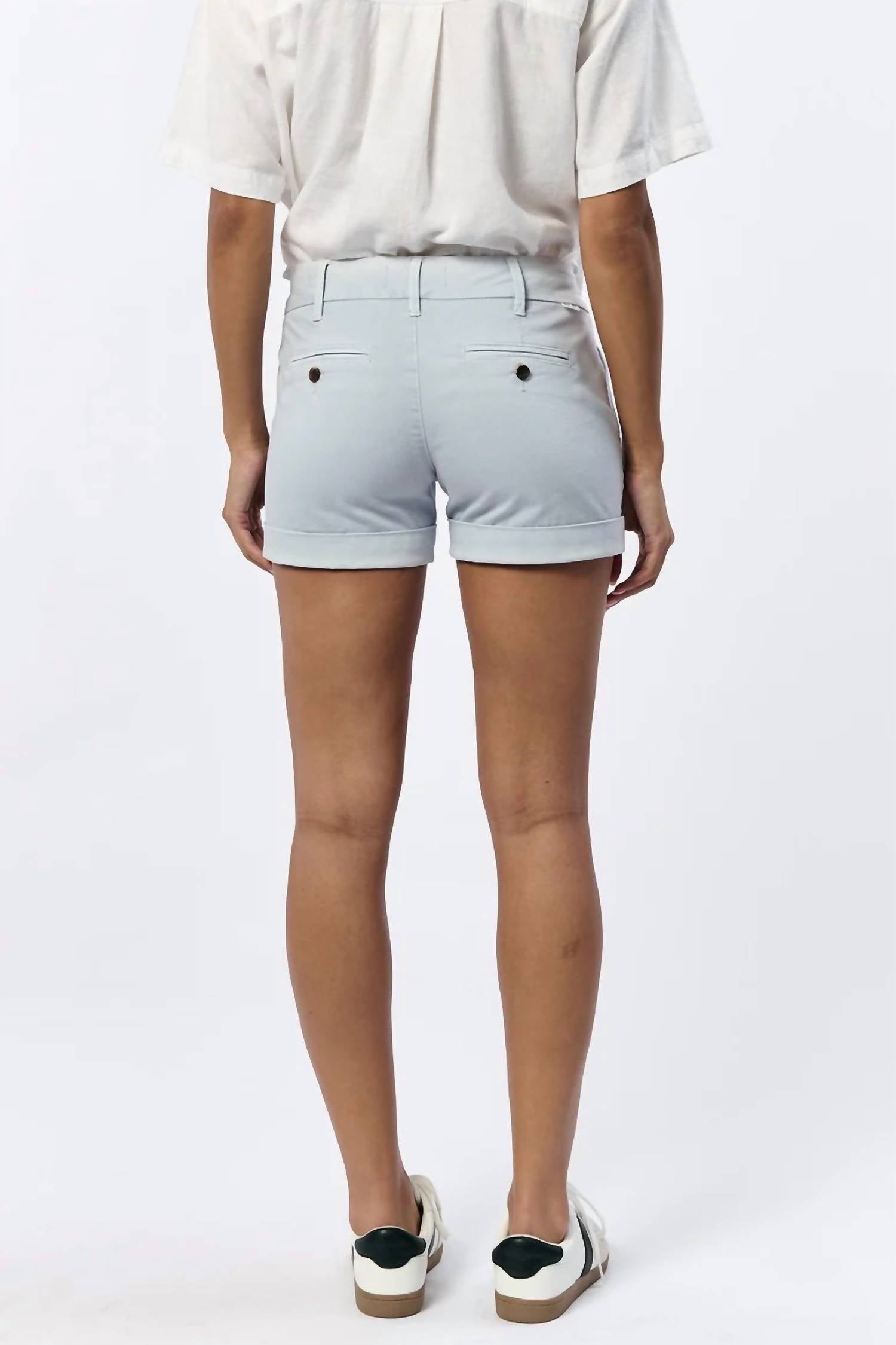 Tuck your favorite tee into these high-waist shorts for a more casual-cool feel. The Hampton Shorts by Dear John Denim offer a chic, minimalist style perfect for your summer wardrobe. Made from a comfortable cotton blend, these high-waist shorts are designed in a solid Skyway color, ideal for vacation wear. They feature convenient pockets and are secured with a hook and eye closure. Care instructions recommend machine washing and line drying for best results.