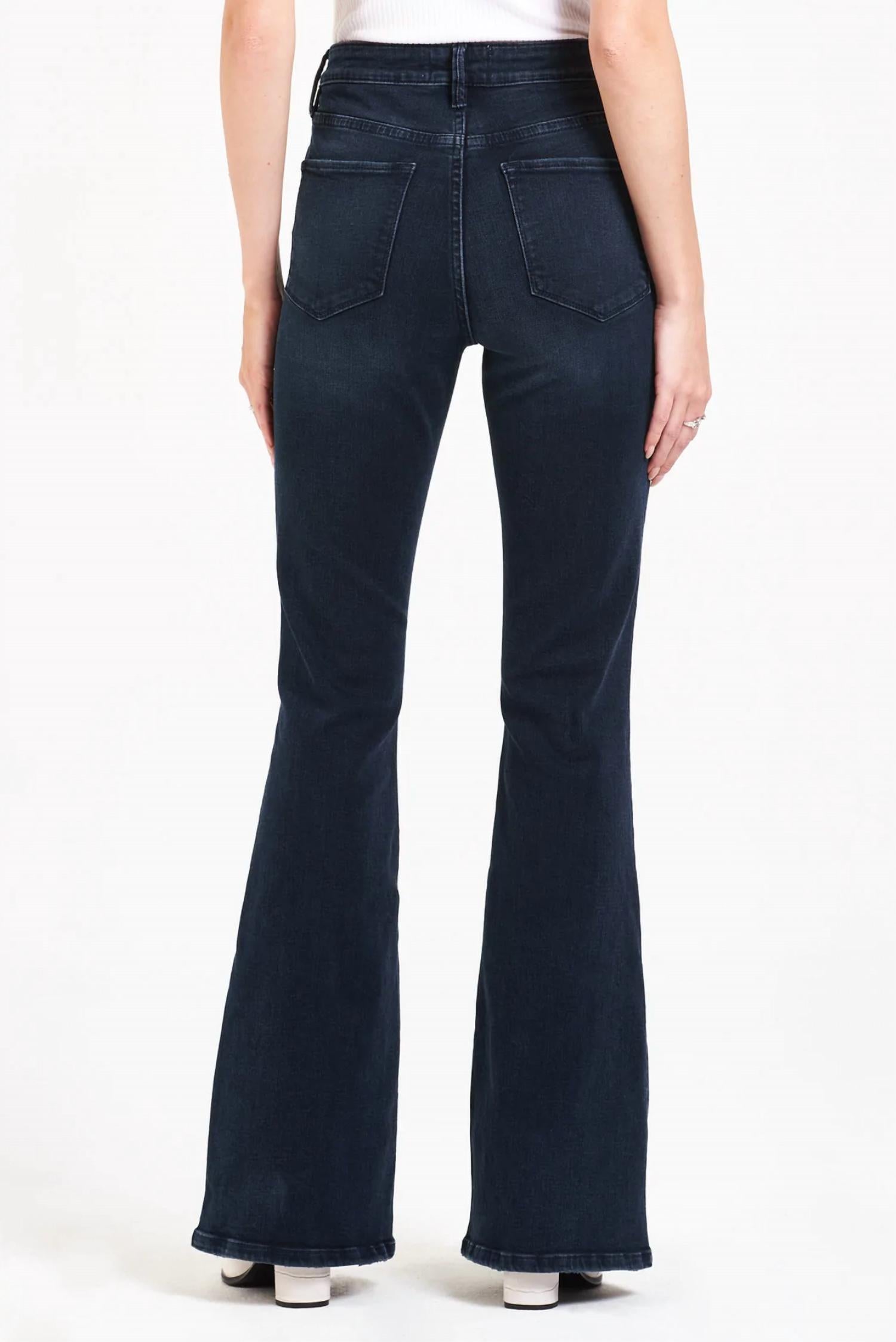 Combine esta calça jeans de perna larga com mules, slides ou suas sandálias de tiras favoritas. Entre no estilo com a Calça Jeans Flare Lacey de Cintura Alta da DEAR JOHN DENIM em um elegante tom preto. Desenhada com cintura alta e perna flare, esta calça jeans oferece costura interna completa em jeans com elastano para máximo conforto. Sua composição inclui 98% algodão e 2% elastano. Fechamento: Braguilha com zíper e botão. Cuidados: Lavar à máquina com água fria e secar em temperatura baixa. Dimensões: 25 cm de cintura frontal, 54 cm de abertura nas pernas, 86 cm de costura interna (Tamanho 27).