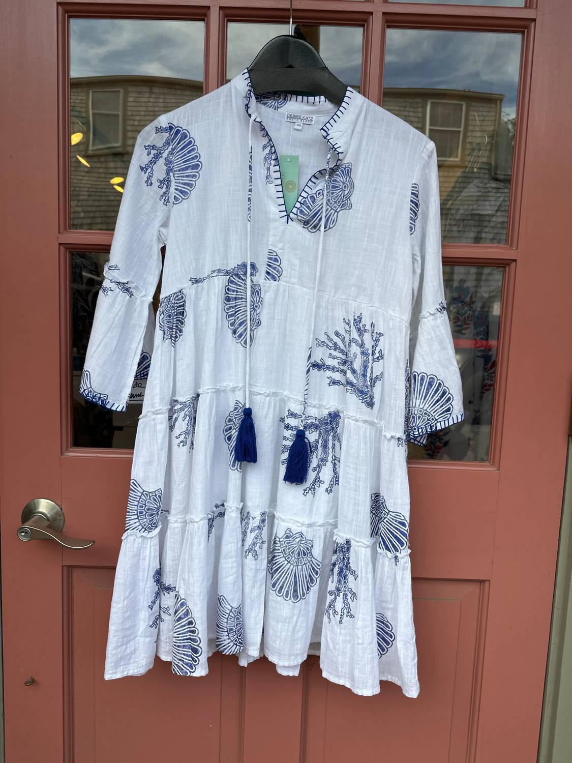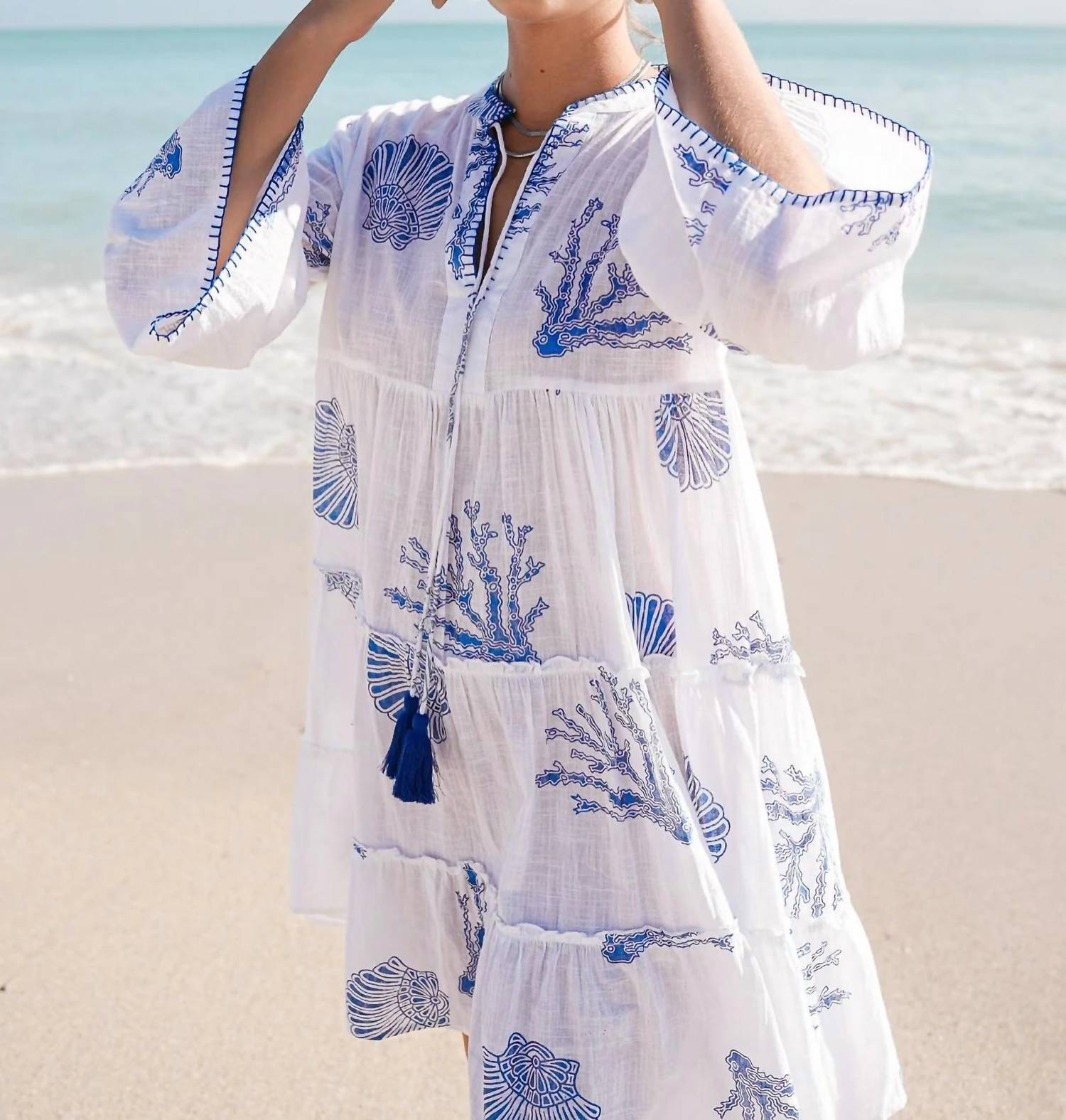 O tipo de vestido fácil e elegante que você vai usar durante toda a estação. Descubra o vestido curto Billi da Debbie Katz, uma peça essencial no estilo boho-chic para qualquer viagem de verão. Este vestido evasê em branco impecável apresenta mangas três quartos e uma estampa gráfica para um visual divertido e sofisticado. Confeccionado em 100% algodão respirável, oferece fechamento por cadarço e um decote em V charmoso. Cuidados: Lavar à máquina e secar no varal para facilitar a manutenção.