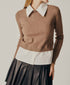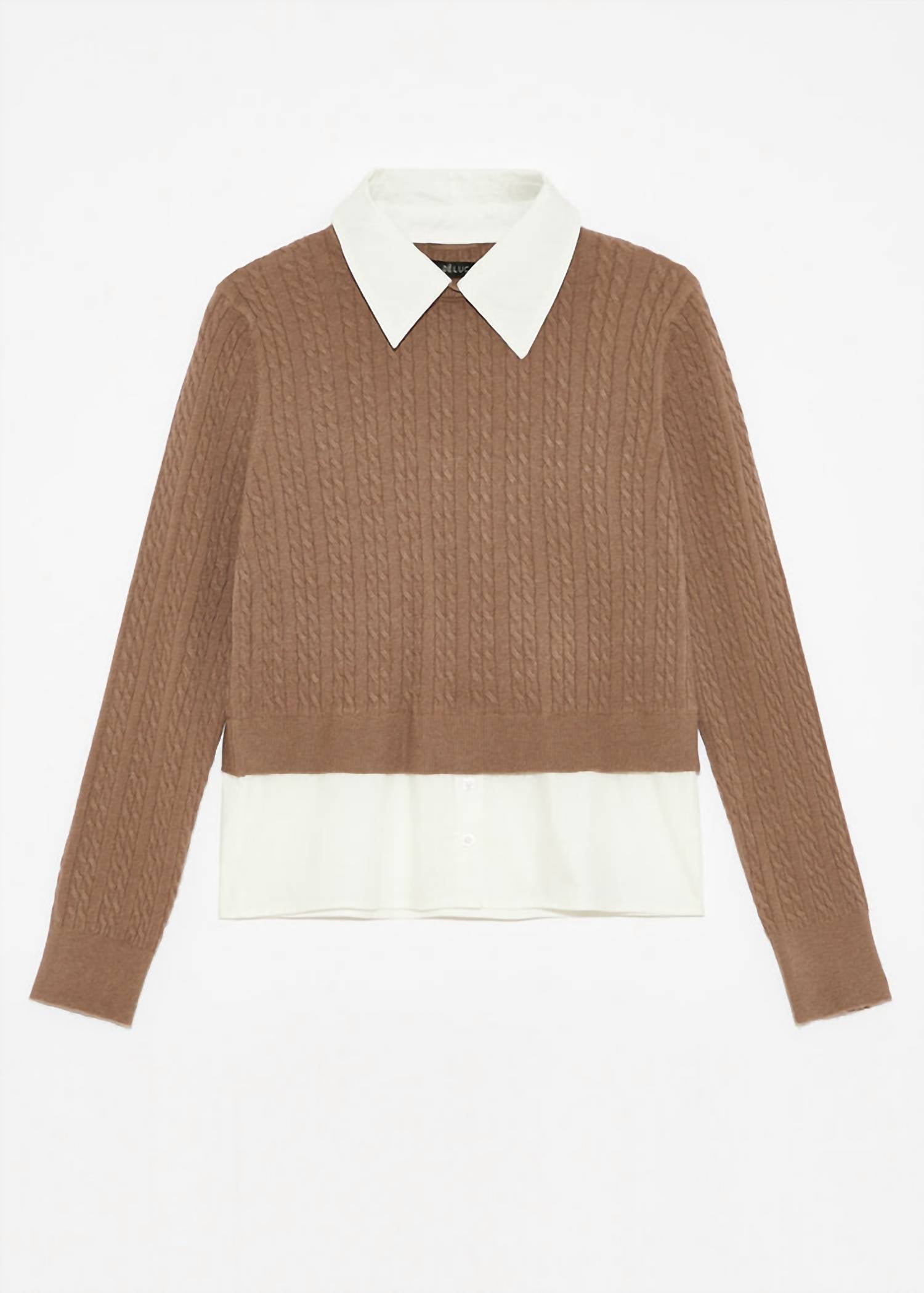 Introducing the Amsonia Combo Top by DELUC, a preppy textured delight in taupe designed for versatile styling. This 2-in-1 piece features long sleeves and a detachable collar neck, secured with snap buttons for a chic look. Crafted from a viscose blend, it easily transitions for various occasions with its pull-on closure. Perfect for the fall season, this top is a must-have for your Thanksgiving or back-to-school wardrobe.