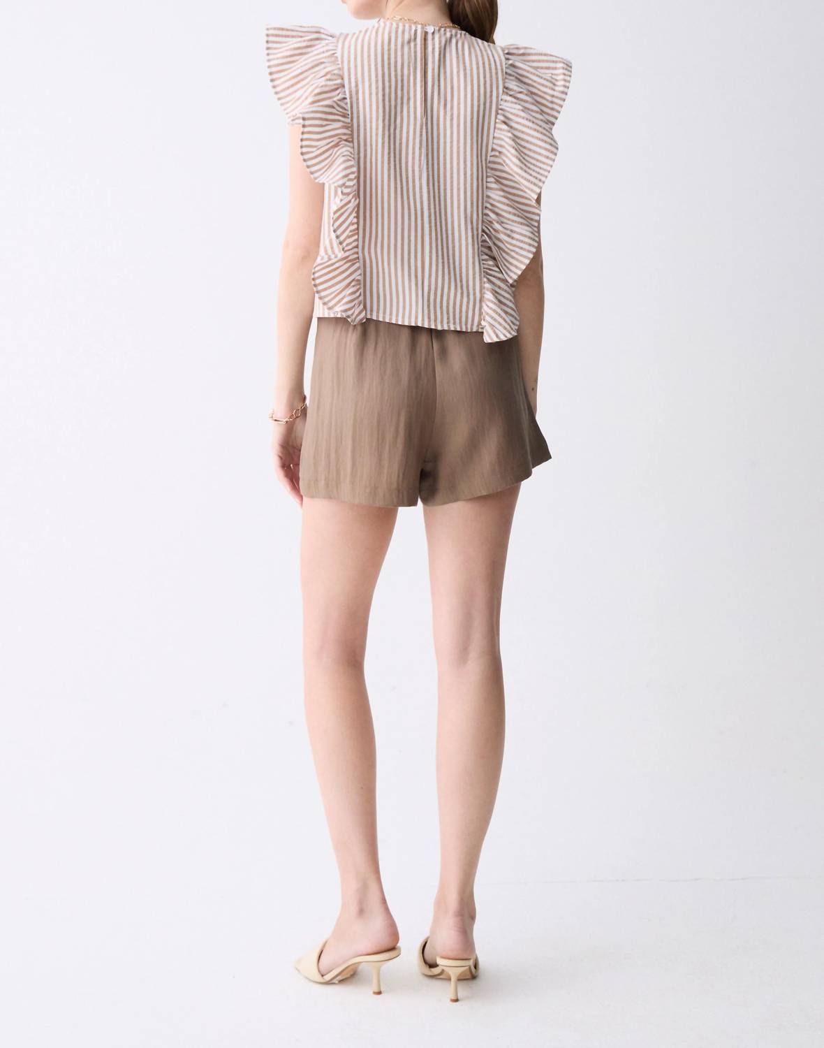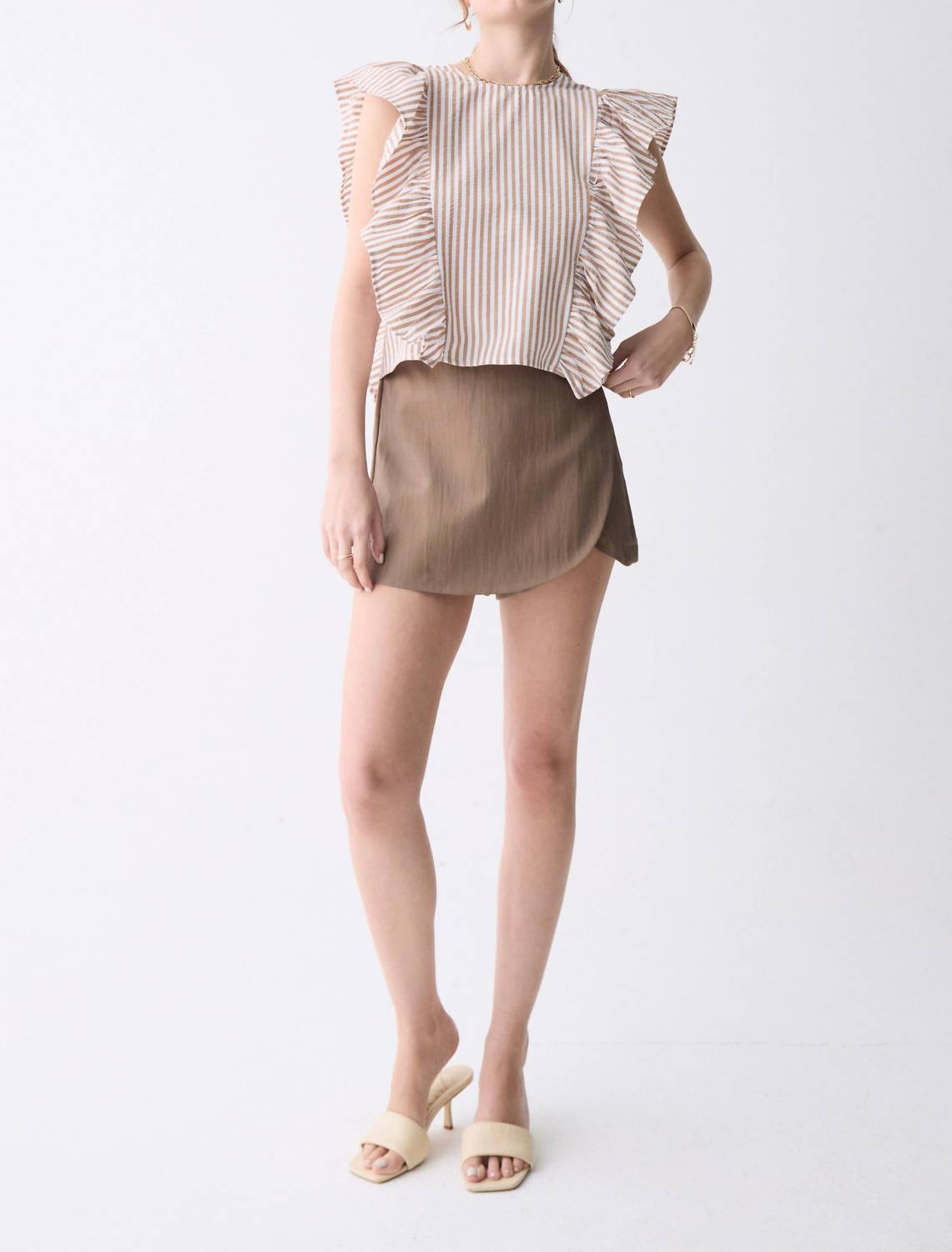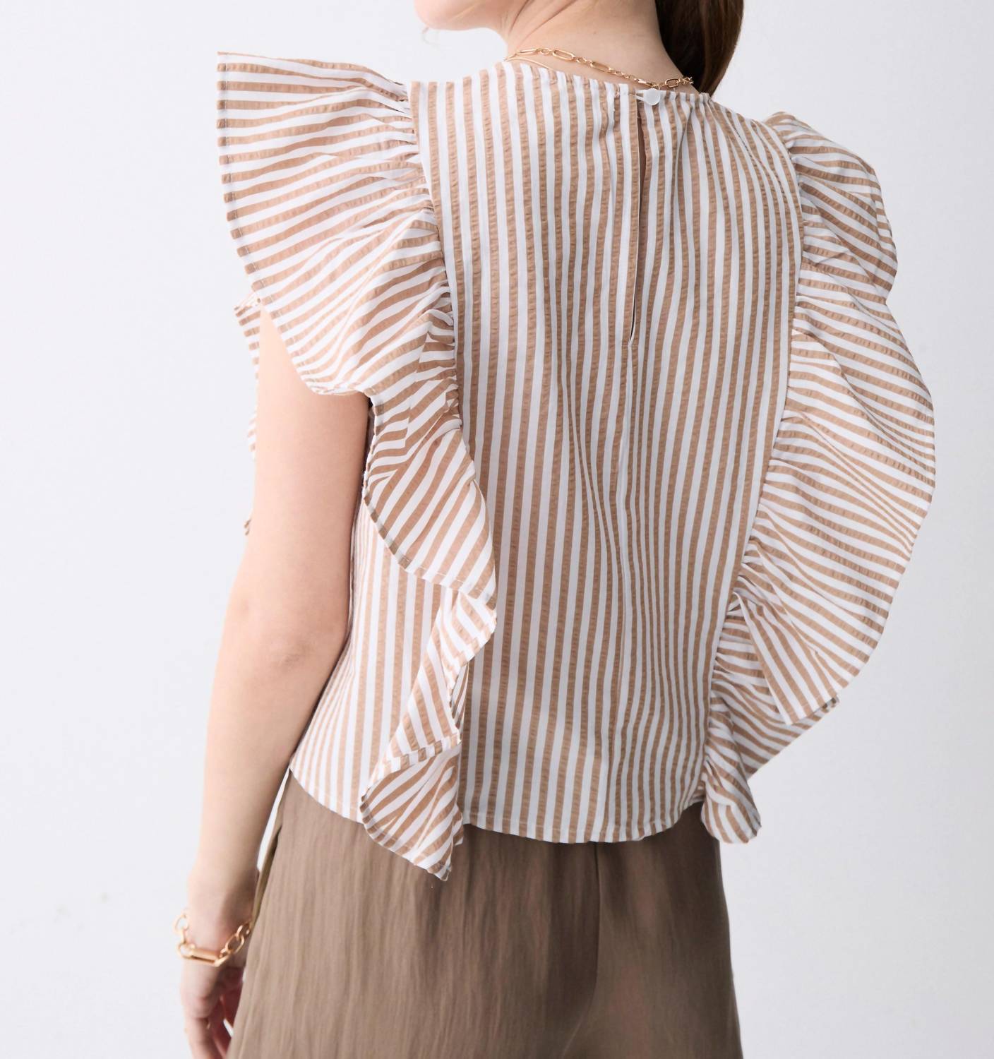 Combine isso com seus jeans e chinelos favoritos para sua próxima noite entre amigas. Eleve seu estilo com o Top Cesar DELUC, uma peça atemporal em bege listrado que adiciona um toque de sofisticação a qualquer guarda-roupa. Esta blusa xadrez é confeccionada em uma confortável mistura de algodão, com mangas curtas e uma elegante gola redonda. Os babados nas laterais, tanto na frente quanto nas costas, realçam seu toque feminino, complementados por um delicado fecho de botão na parte de trás do pescoço. Para um cuidado ideal, lave à mão e deixe secar na horizontal. A modelo mede 1,75 m e veste tamanho P.