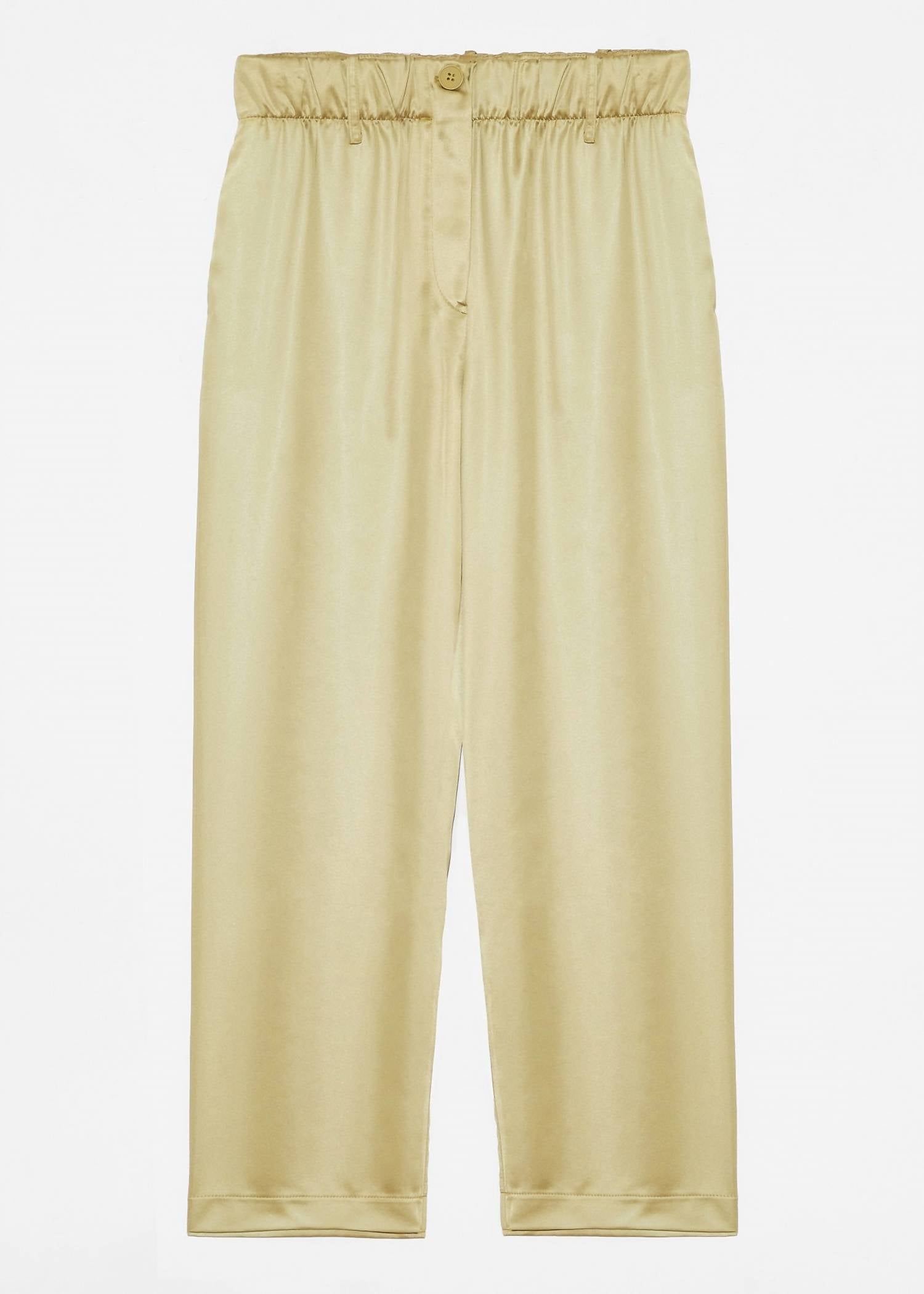 Discover the Courbet Pants by DELUC, a chic addition to your wardrobe in a refreshing Laurel Green. These ankle-length satin pants boast a relaxed fit with a pull-on elasticized waistband, featuring a faux placket and button for a sleek touch. Practical side pockets and a back patch pocket with a button offer utility and style.