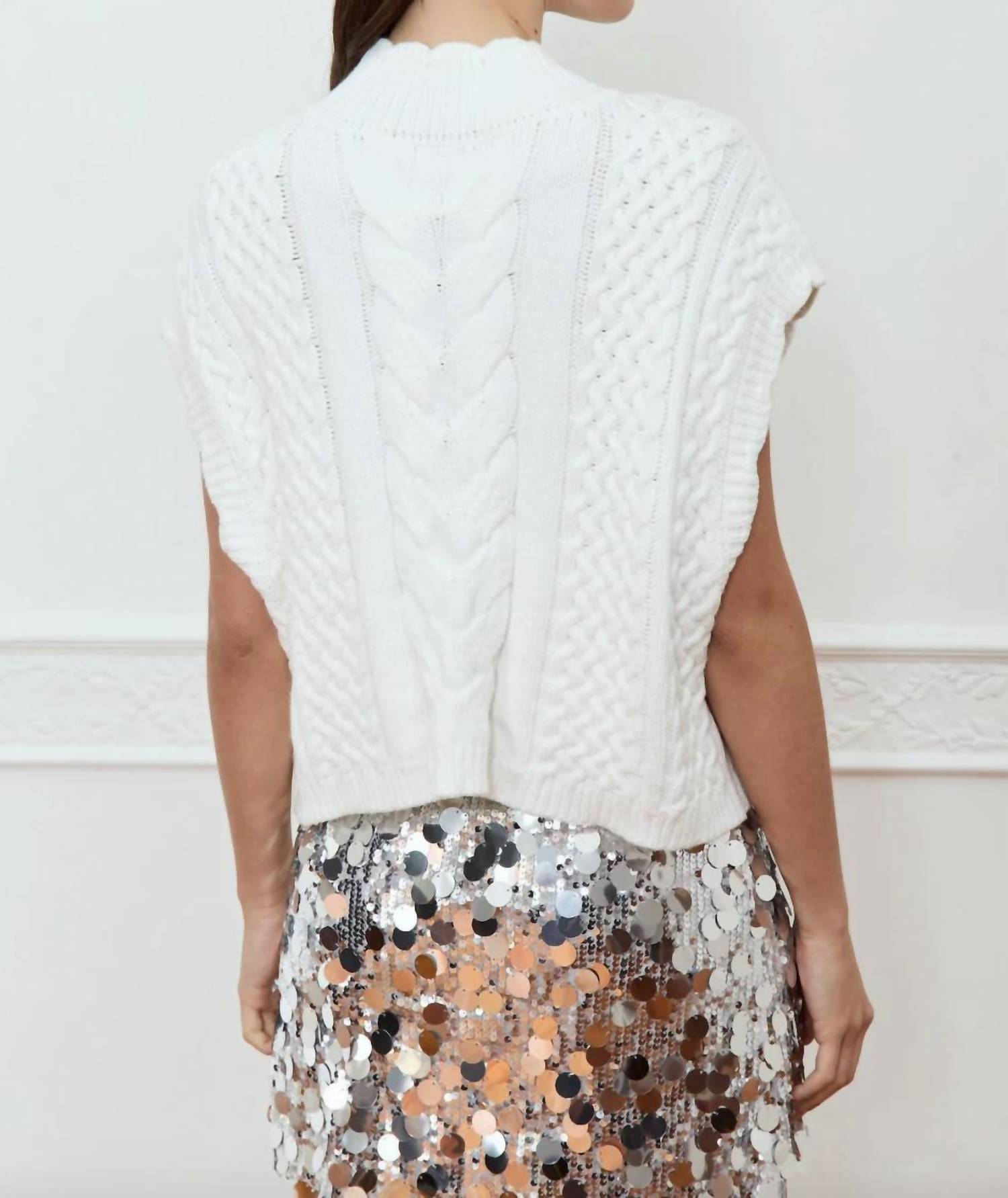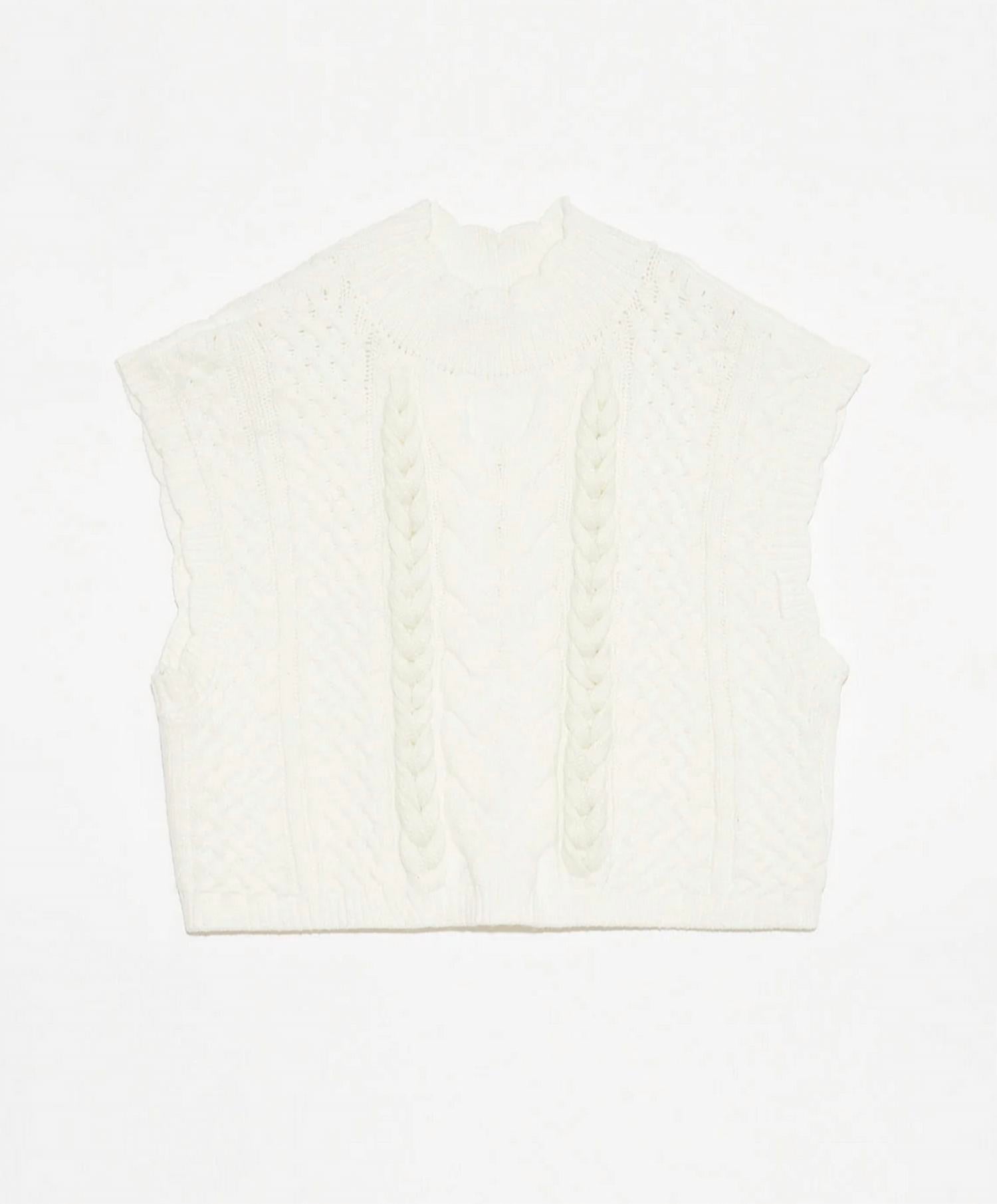 Apresentamos o Colete Elm Knitted da Dèluc, uma adição chique a qualquer guarda-roupa em um sofisticado tom cru. Este colete possui mangas curtas e um elegante design de gola alta, confeccionado em viscose de alta qualidade. Possui um prático fecho de puxar, garantindo facilidade de uso. Os cuidados são simplificados com instruções de lavagem à máquina, tornando-o moderno e funcional.