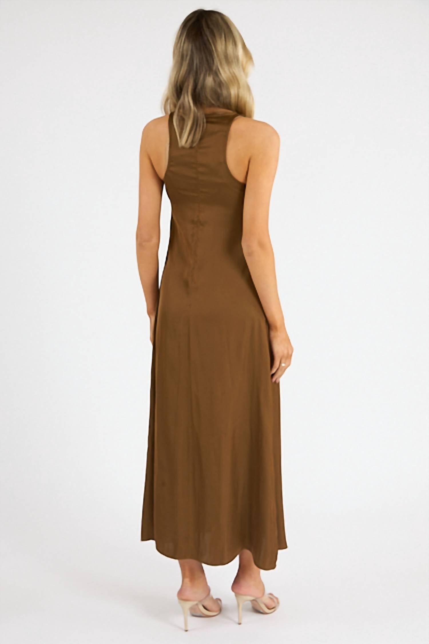Um vestido longo que é tão fofo quanto confortável. Conheça o Vestido Longo Lopes da DELUC, um vestido sem mangas, chique e despojado, em um sofisticado tom cáqui marrom ombré. Seu corte longo e justo com gola careca é confeccionado em 100% poliéster de alta qualidade, tornando-o uma peça versátil em qualquer guarda-roupa. O fecho pull-on facilita o uso, enquanto o design moderno ombré adiciona um toque de estilo. As instruções de cuidado incluem lavar a no máximo 40 graus, evitar a secagem em tambor e passar a ferro em temperatura baixa. A modelo tem 1,70 m e veste tamanho P.