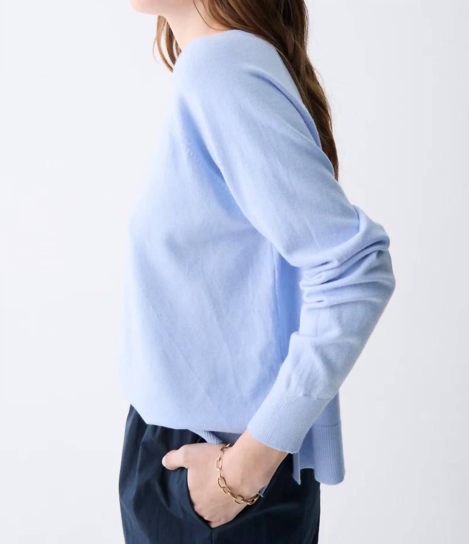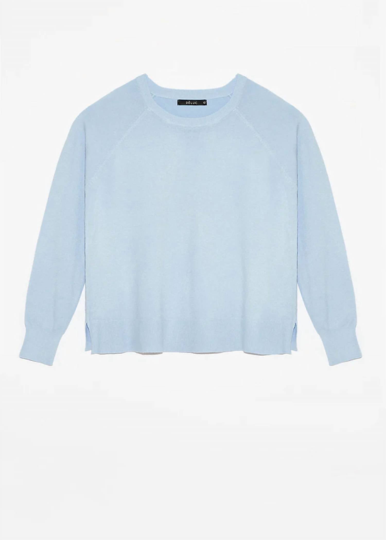 Stay warm and stylish in this versatile and effortlessly cool knitwear staple. Wear it alone or layered, it's the perfect sweater for the season and you'll wish you had it in every color. Introducing the Lorraine Long Raglan Sleeves Sweater by DELUC, a minimalist piece in light blue, ideal for a relaxed vacation style. Featuring long raglan sleeves and subtle side slits, this sweater is crafted from 60.8% Viscose/39.2% Polyamide for a comfortable fit. This solid pattern sweater offers a pull-on closure and is easy to care for with a hand wash, lay flat to dry routine. Perfectly suited for fall, it combines classic crewneck elegance with a modern touch.
