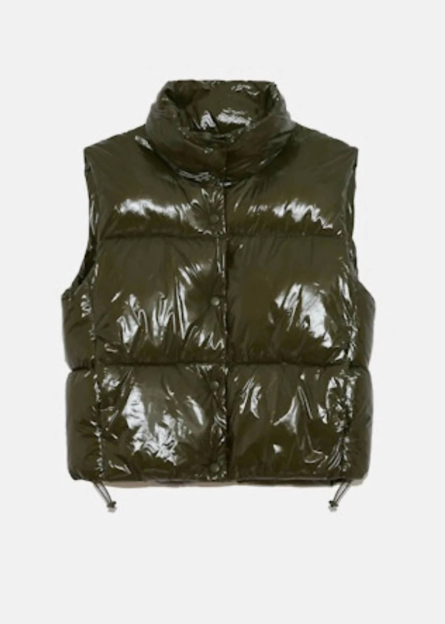 Use este colete sobre uma roupa toda preta para um visual perfeitamente elegante. Apresentamos o Colete Puffer Marmi da DELUC, uma peça chique em um verde-exército chamativo, perfeito para férias de outono cheias de estilo com inspiração escandinava. Este colete sem mangas é confeccionado em 100% nylon com forro 100% poliéster, proporcionando um acabamento luxuoso e fluido. Possui gola alta e bolsos frontais práticos na costura, enquanto os botões de pressão e o fecho de zíper na frente garantem um ajuste confortável. Com bainha ajustável, este colete puffer oferece estilo funcional e verdadeira versatilidade no seu guarda-roupa, disponível no tamanho P para pessoas com 1,75 m ou altura similar.