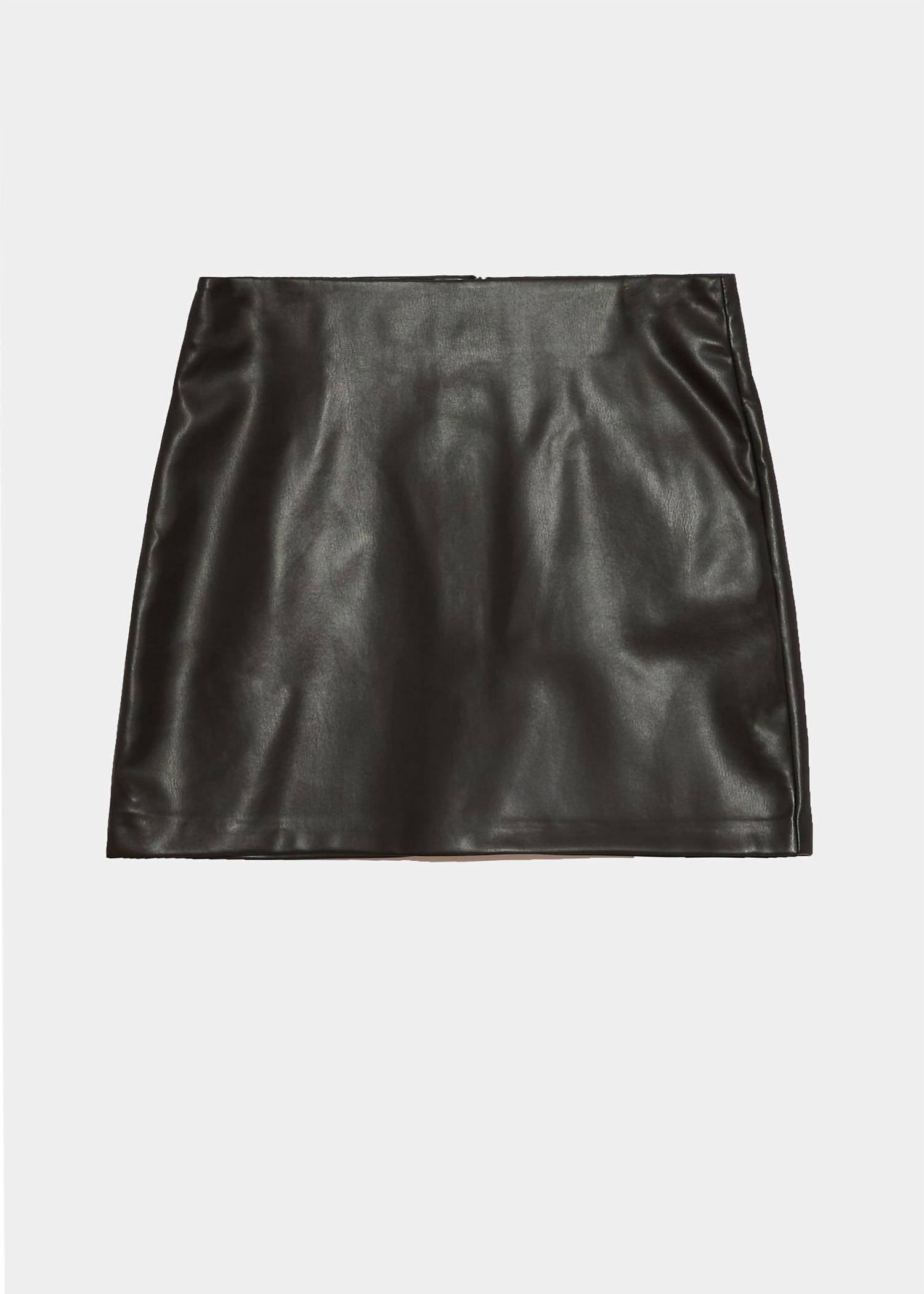 Vista sua camiseta favorita para um visual mais descontraído. Eleve o seu estilo do dia a dia com a Saia Sedum da DELUC, confeccionada em couro sintético preto clássico. Esta minissaia com estampa lisa apresenta pinças nas costas para um caimento elegante e um fecho de zíper oculto para uma silhueta elegante. Com caimento perfeito e corte reto, ela proporciona um visual elegante e elegante, sem bolsos. Ideal para a mulher antenada na moda, a saia foi modelada por alguém com 1,75 m de altura que veste tamanho P.