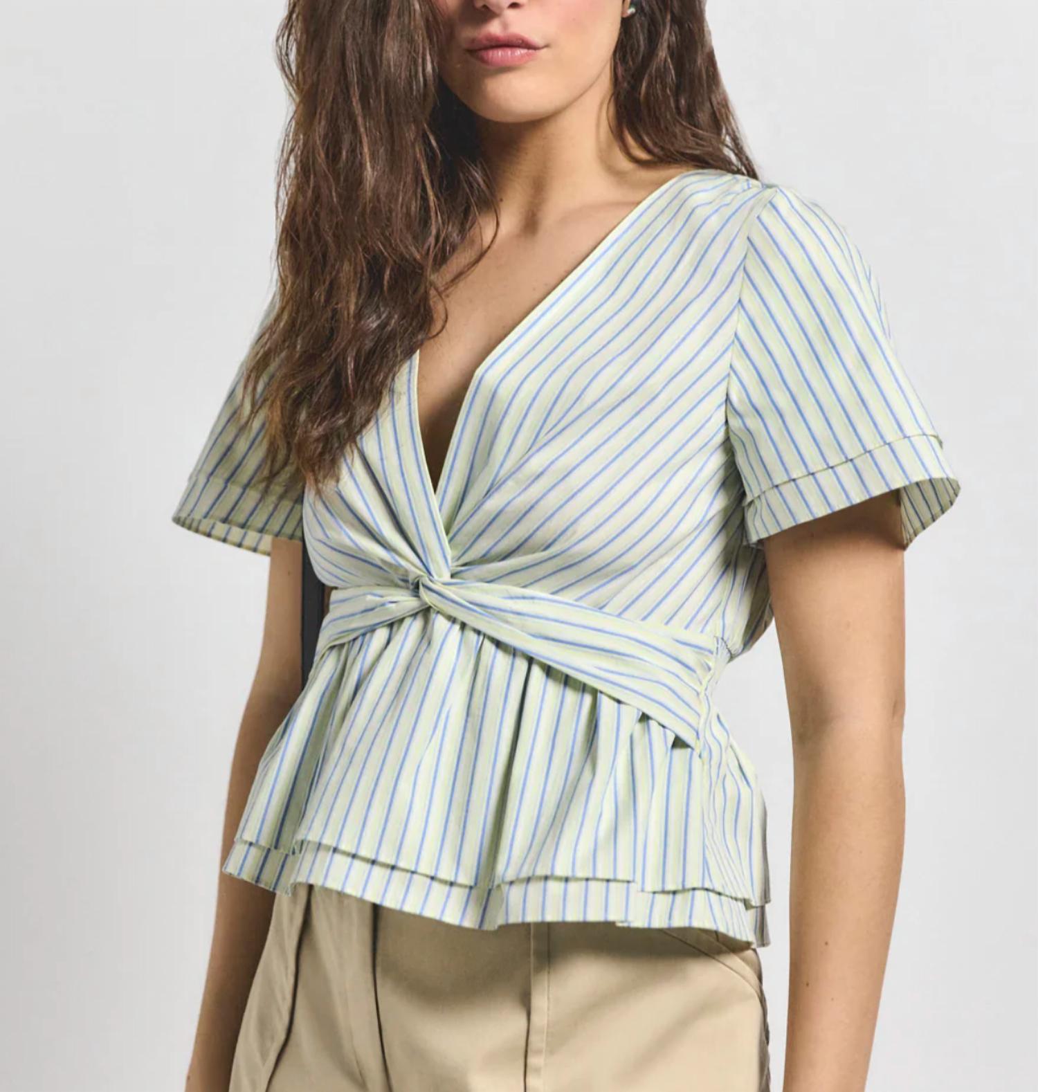 A blusa Caspien Twist Neck de manga curta da Derek Lam 10 Crosby certamente chamará a atenção em qualquer jantar. Confeccionada em 100% algodão, esta blusa apresenta uma vibrante estampa listrada, perfeita para o verão. Com seu decote em V marcante e detalhe de gola torcida, esta peça personifica a tendência do luxo discreto. As instruções de cuidado são simples e recomenda-se a lavagem a seco.