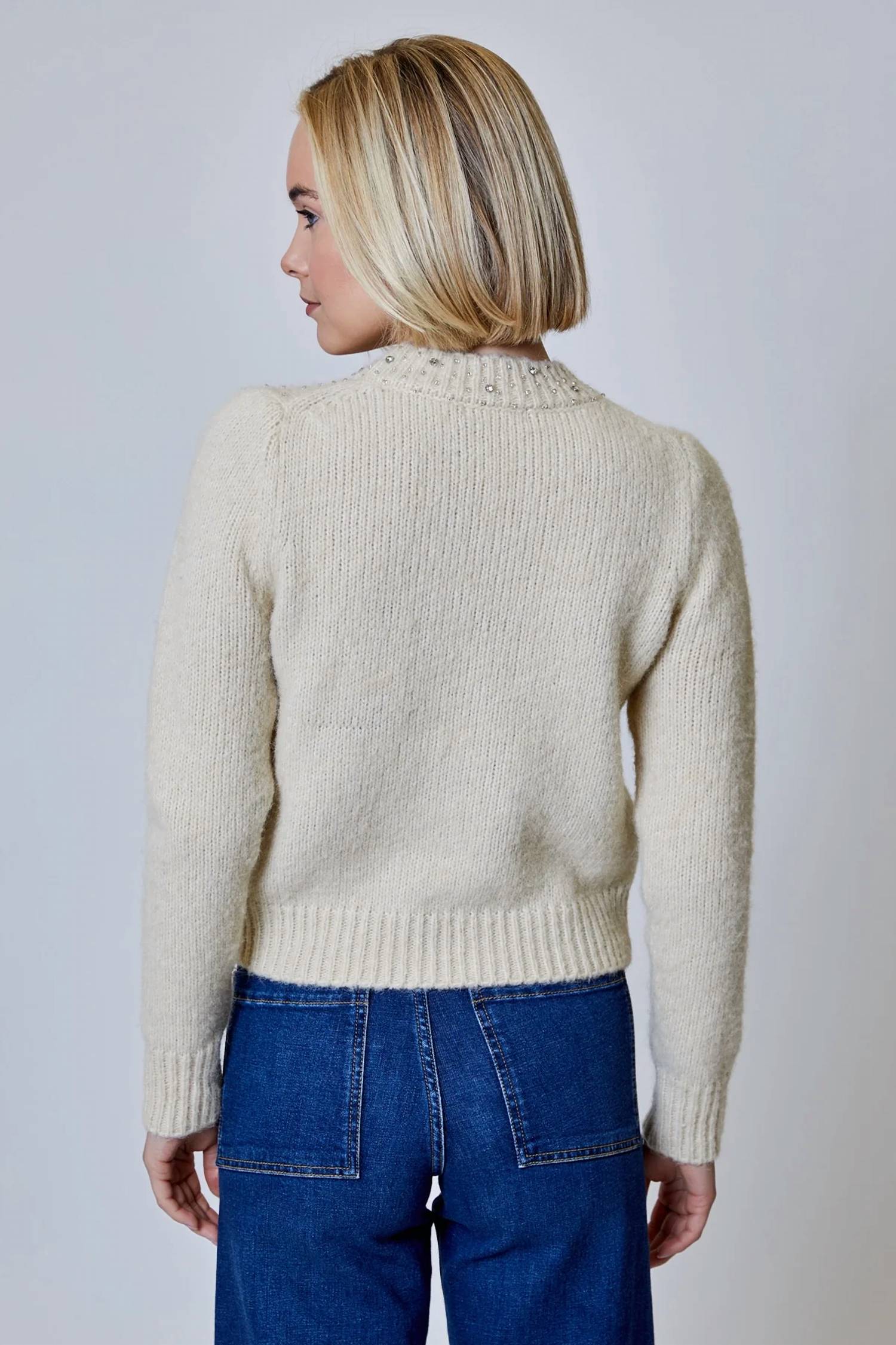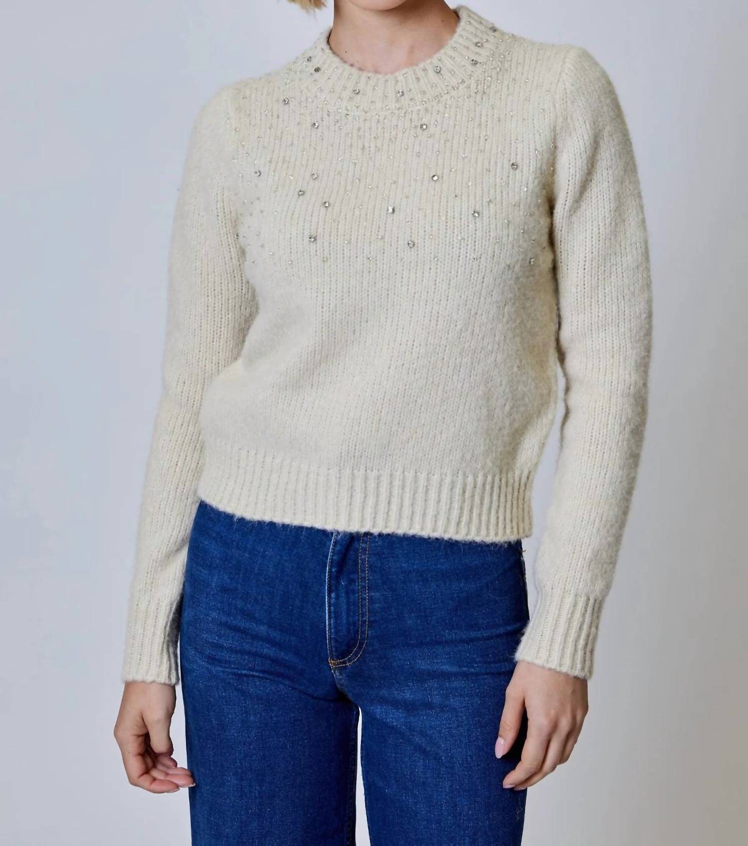 A camiseta de manga comprida perfeita que combina com quase tudo. Adicione um toque de brilho à sua coleção aconchegante com o suéter com strass. Este suéter lindamente desenhado vem em tons suaves de amêndoa e pedra para um visual neutro que combina perfeitamente com qualquer peça do seu guarda-roupa. As mangas compridas oferecem aquecimento, enquanto os delicados detalhes em strass adicionam um toque de glamour e elegância.