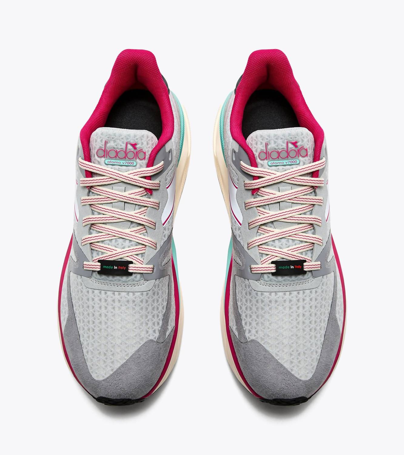 When fashion meets function. Step up your athletic game with the Diadora Women’s Atomo V7000 Sneaker in striking Silver White Rubin Red. This expertly crafted Italian running shoe showcases the innovative DD anima compound for exceptional cushioning, comfort, and reactivity, perfectly suited for fitness and workout sessions. Designed for medium width and featuring a round toe and flat heel, this sneaker is ideal for those who prioritize both performance and comfort. Perfect for the athleisure trend, it's a standout choice for spring.