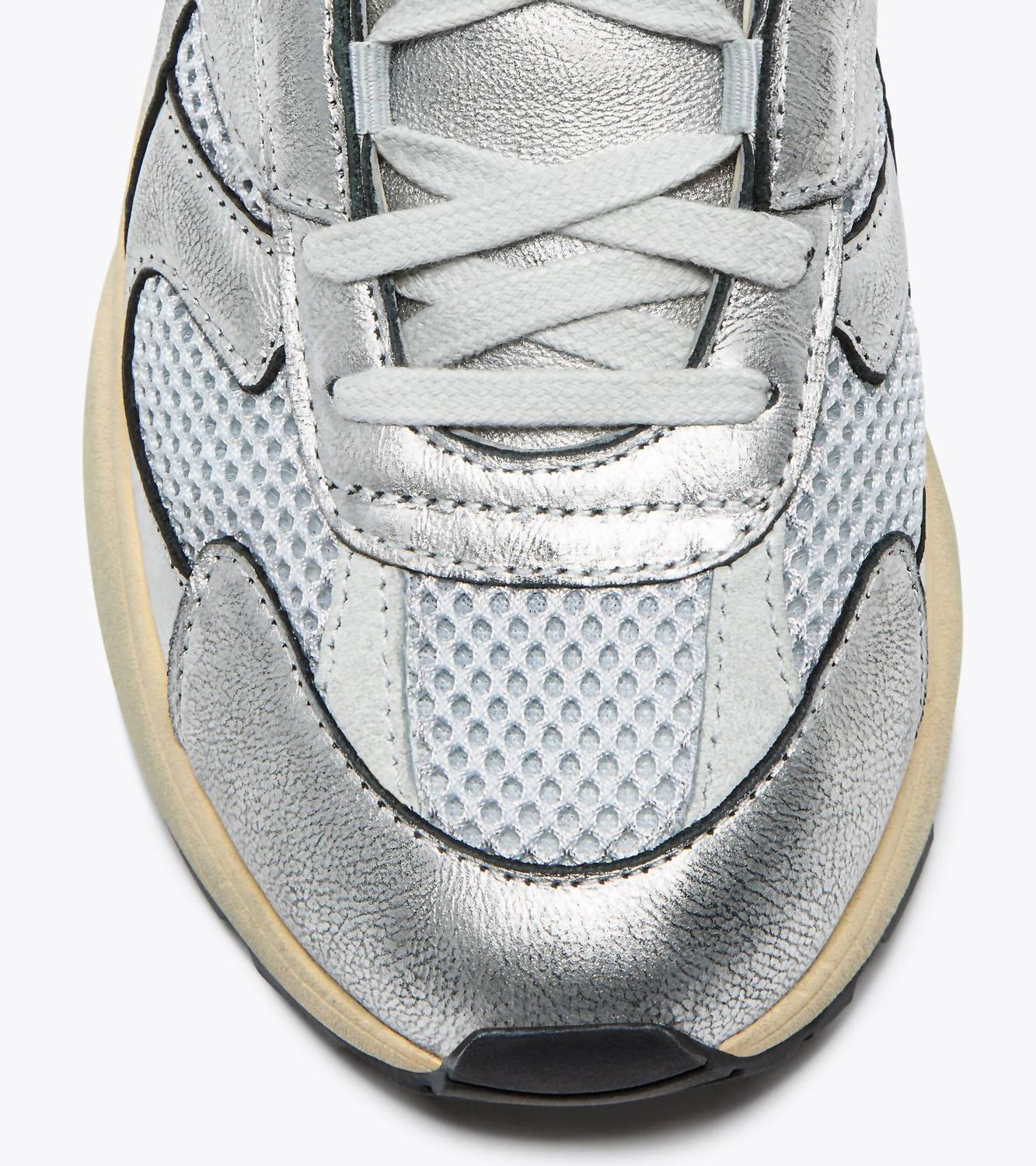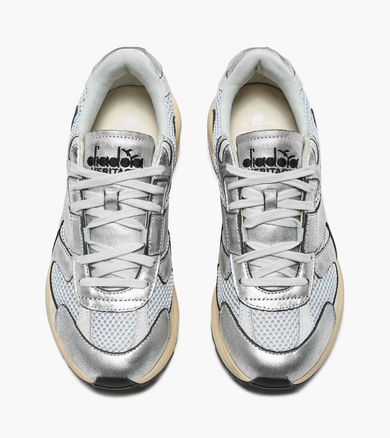 Get your daily steps in with these adorable sneakers. Elevate your streetwear style with the Women's Mercury Elite Silver Used Wn Sneakers by Diadora. Featuring a unique mix of metalized mesh and cow laminated leather, these sneakers are treated with a stone wash and heavy wax for an edgy look. The lace-up system includes cotton waxed laces for a secure fit, while the EVA midsole and removable insole ensure comfort and support. Perfect for spring occasions like a holiday party, the rubber outsole promises durability, and the flat heel design offers everyday ease. Ideal for those who embrace a distinctive style this Thanksgiving.