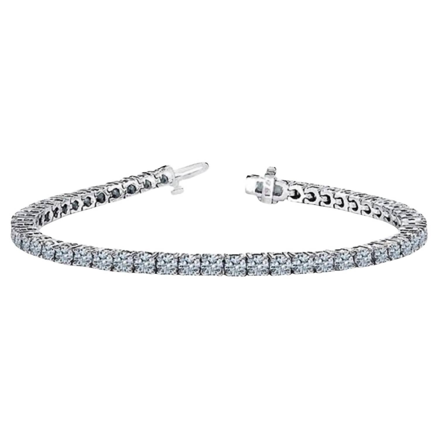 Presenting the 3.00 Cts Diamond Tennis Bracelet by Diana M Jewels, a stunning piece crafted in 14k White Gold. This fine jewelry features natural round brilliant diamonds with a total weight of 3.00 carats, elegantly set in a secure 4-prong setting. Closure: Box clasp. Ideal for those born in April, this diamond bracelet embodies timeless elegance and sophistication.