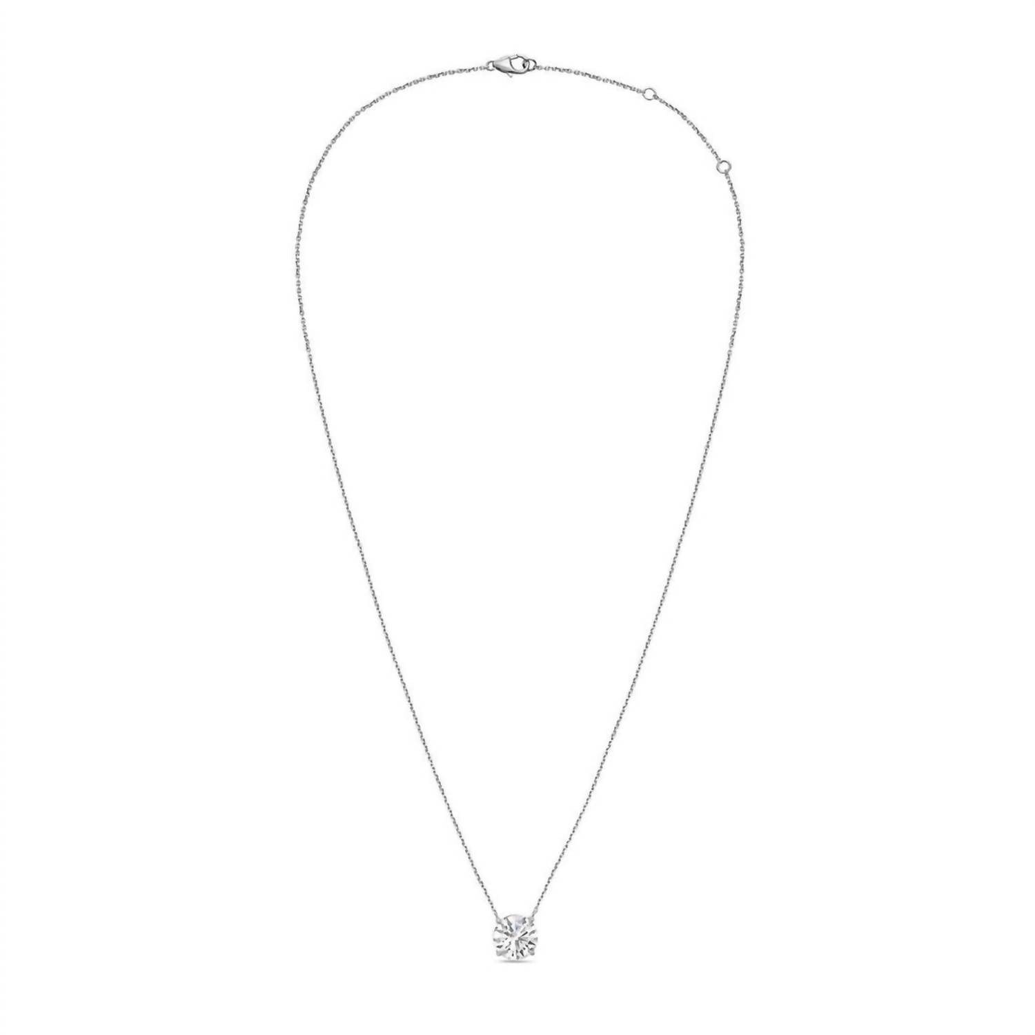 Elevate your elegance with the 4.00 Cts Lab Grown Diamond Solitaire Pendant Necklace from Diana M Jewels. Crafted with exquisite 14k white gold, this fine jewelry piece features a round brilliant diamond with DEF color and VS clarity, secured in a classic prong setting. The pendant boasts a remarkable 4.00 carats, showcasing an excellent cut that maximizes its brilliance. Closure: Lobster clasp; Chain length: 16-18 inches.