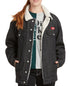A jaqueta jeans trucker recebe uma atualização moderna da Dickies com forro de lã de algodão e um ajuste folgado e grande. Ajuste largo. Gola pontuda; fechos de botão frontais. Bolsos com aba no peito; bolsos na costura na cintura. Forrado com lã sherpa.